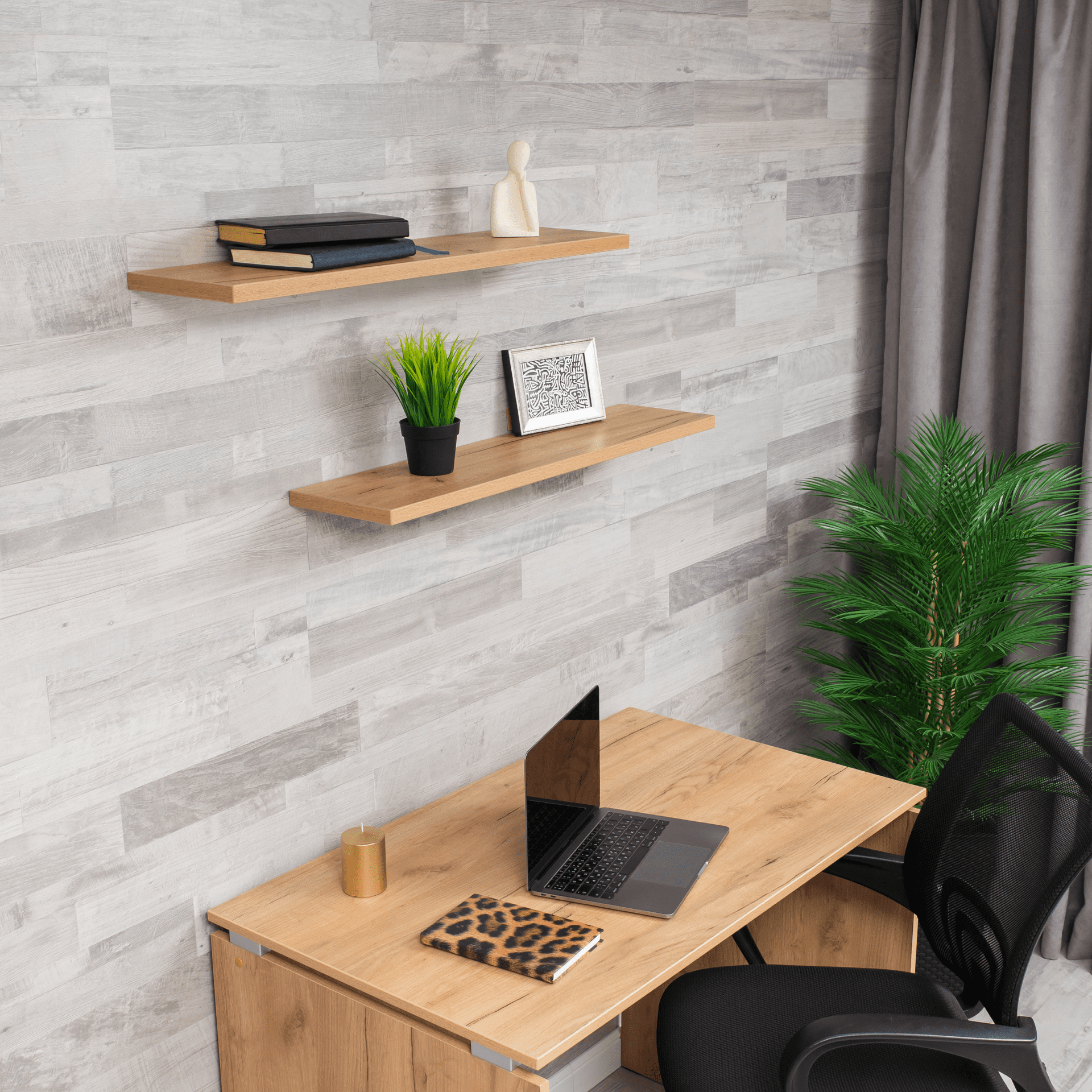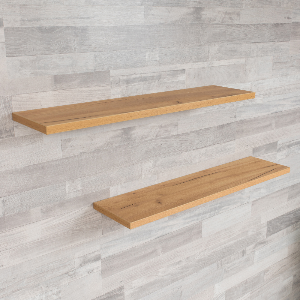 Купить Полка настенная прямая навесная, со скрытым монтажом 2 шт дуб крафт, 80х20