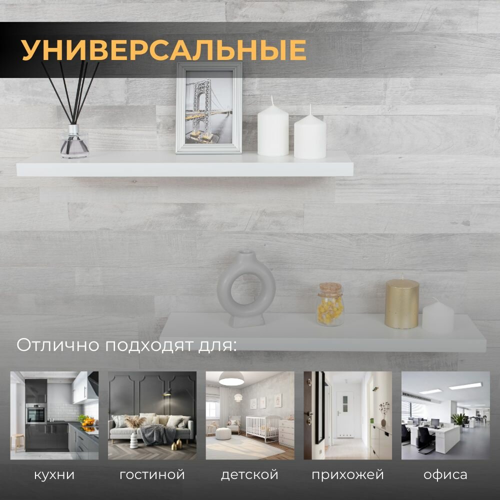 СохранитьПолка настенная прямая навесная, со скрытым монтажом 2 шт, белый, 60х15 интересное: