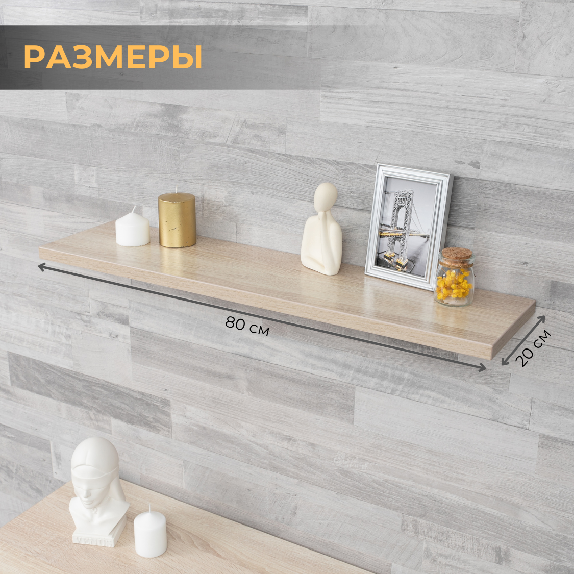 Полка настенная прямая навесная, со скрытым монтажом, дуб сонома, 80х20