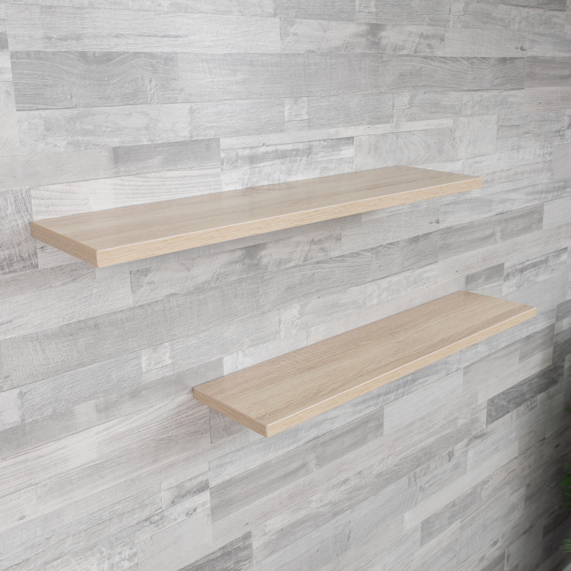 Купить Полка настенная прямая навесная, со скрытым монтажом 2 шт, дуб сонома, 80х20