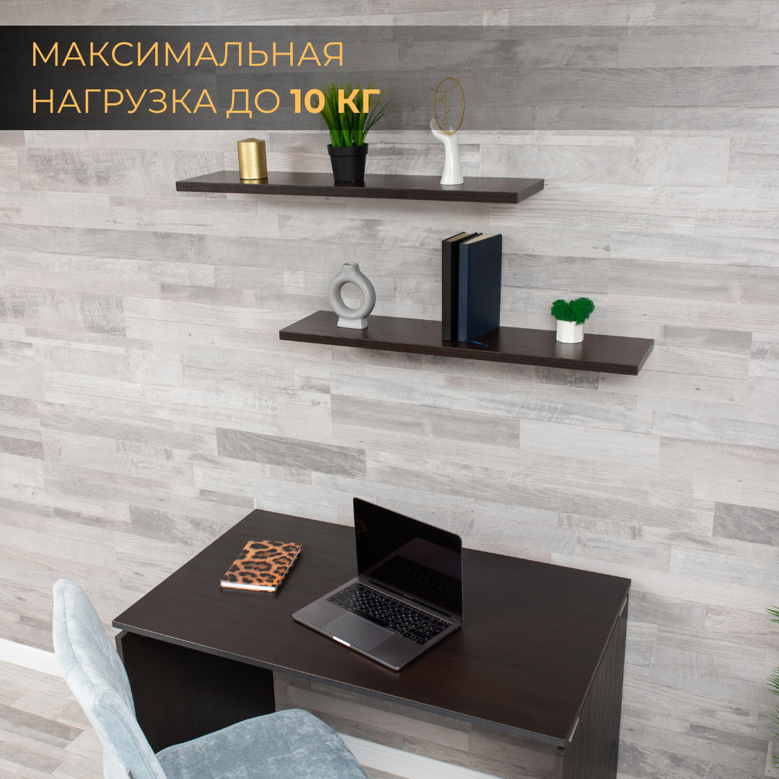 Полка настенная прямая навесная, со скрытым монтажом 2 шт Венге 60х13 см