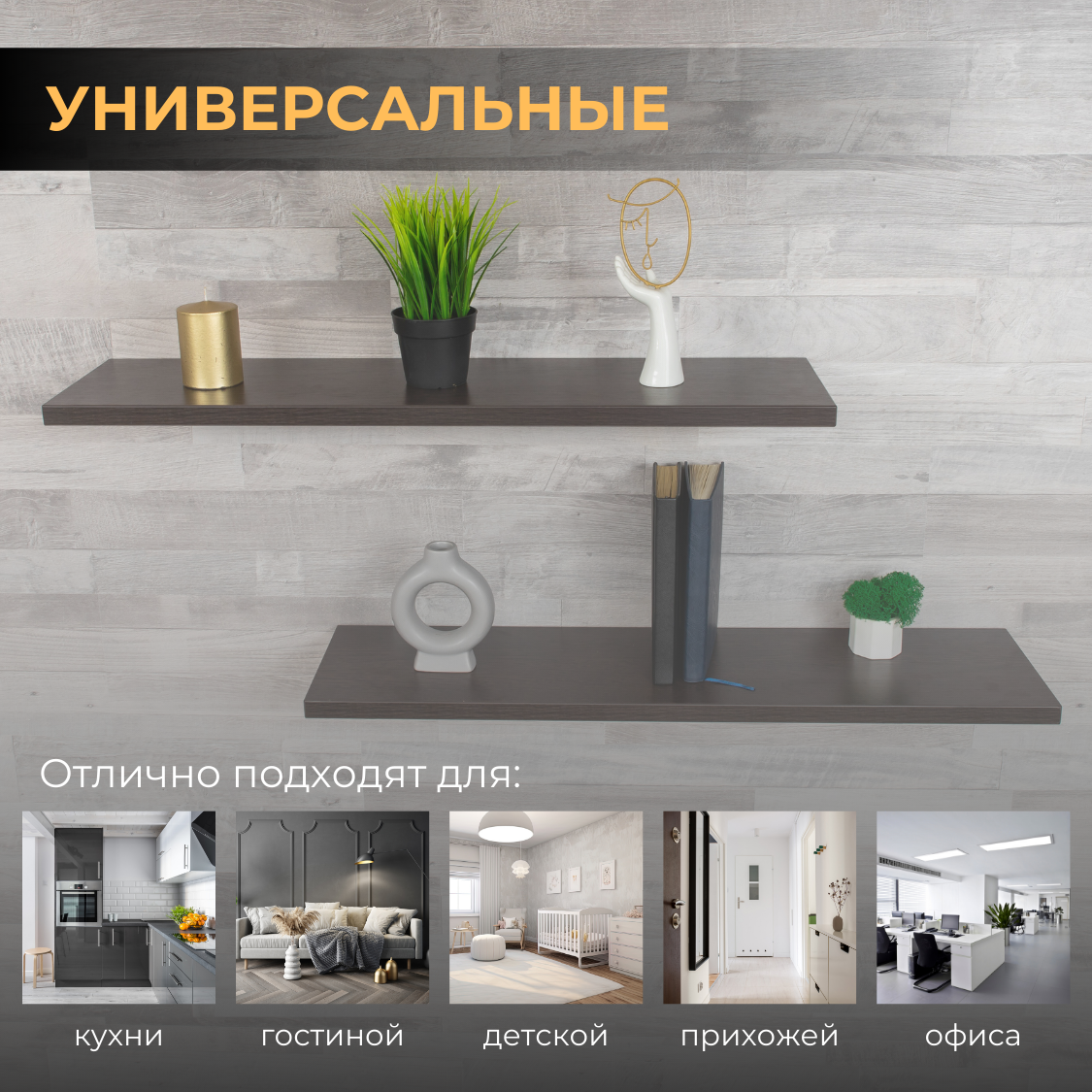 | Назначение | для гостиной/спальни / для детской / для икон / для книг / для кухни / для прихожей / для роутера / для специй / для фоторамок и сувенирной продукции / универсальное |
