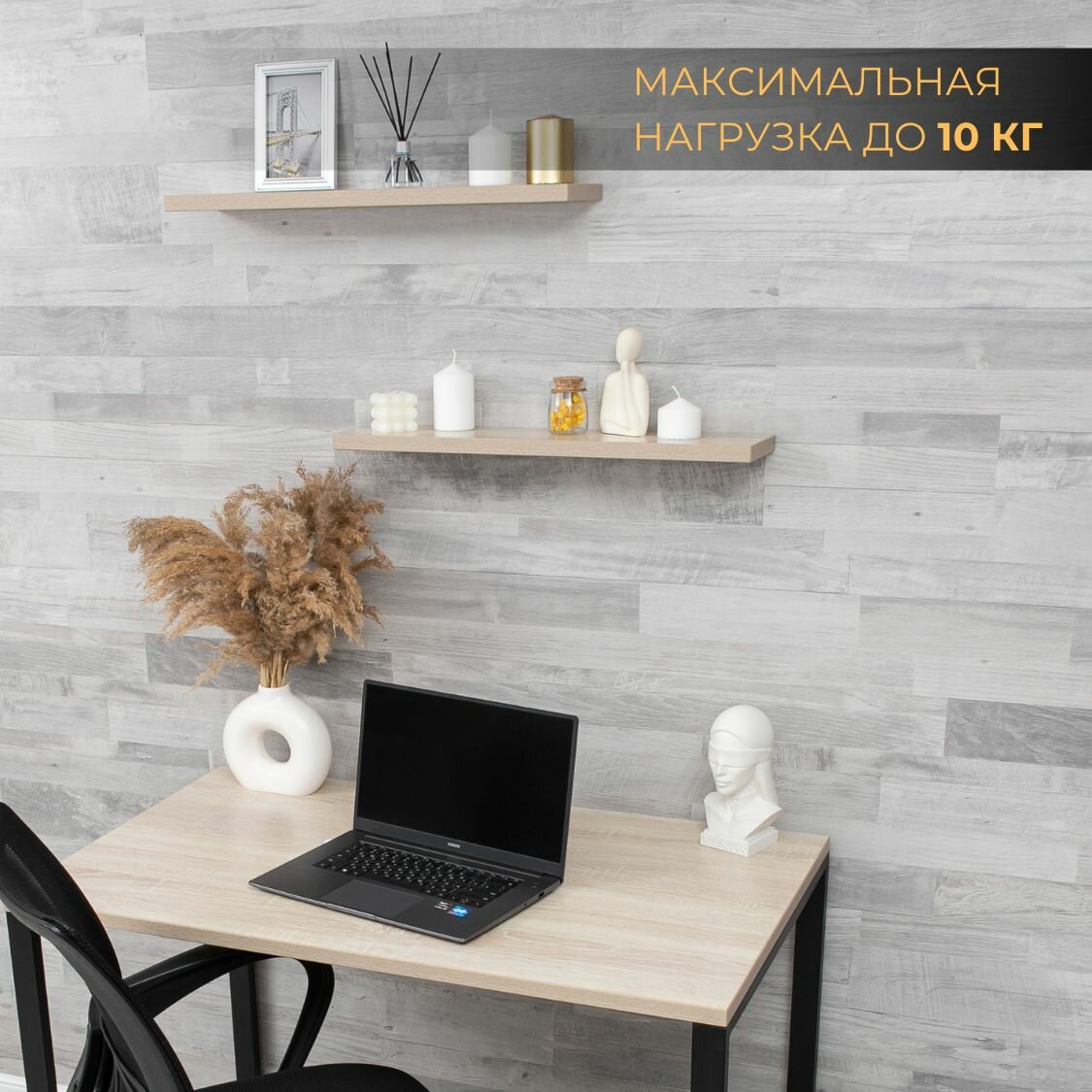 Полка настенная прямая навесная, со скрытым монтажом 2 шт дуб крафт, 80х20