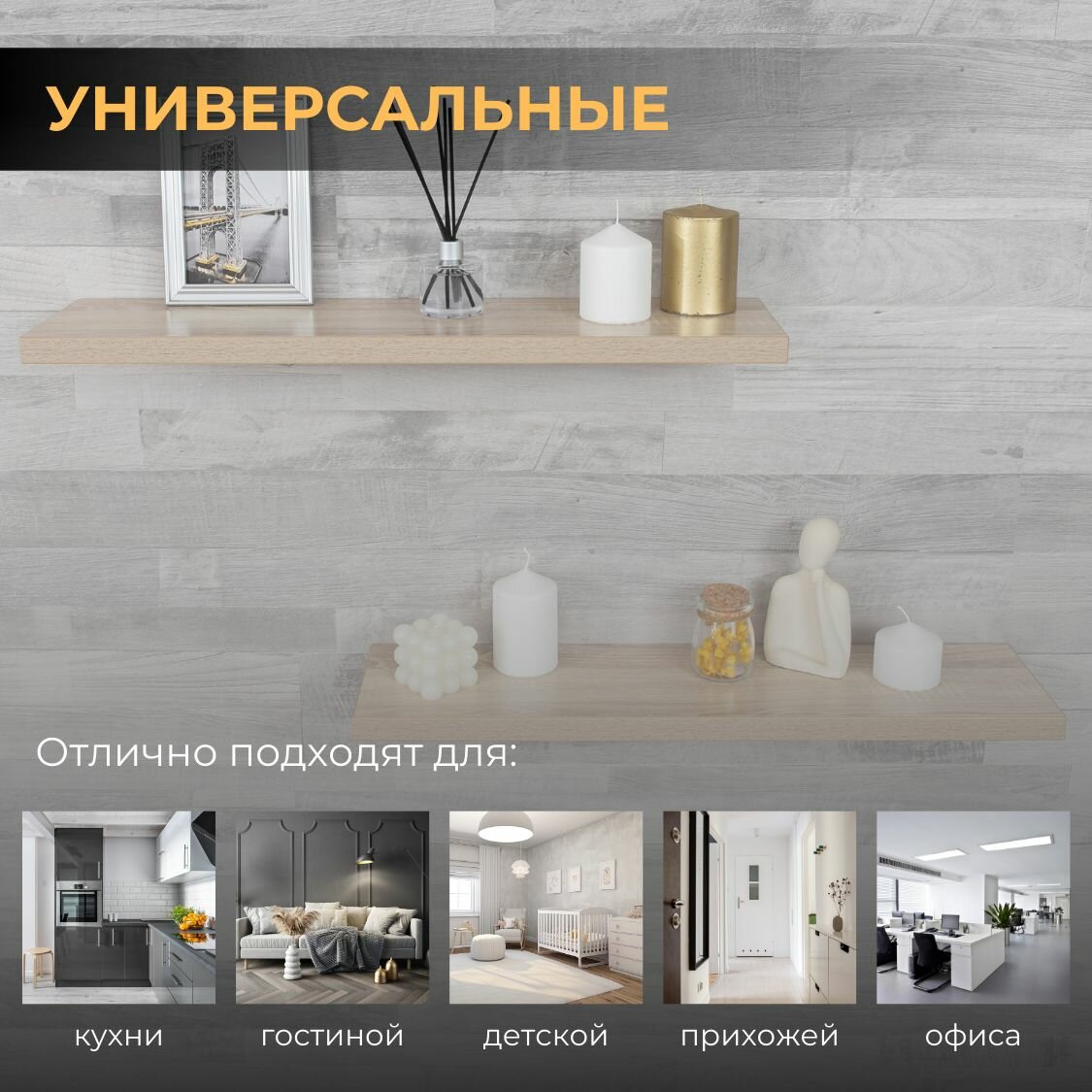 | Назначение | для гостиной/спальни / для детской / для икон / для книг / для кухни / для прихожей / для роутера / для специй / для фоторамок и сувенирной продукции / универсальное |