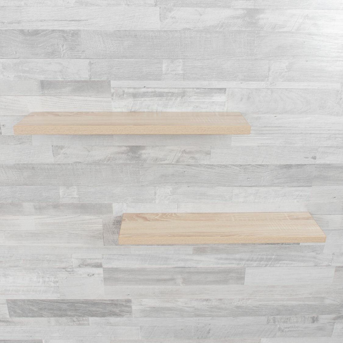 Полка настенная прямая навесная, со скрытым монтажом 2 шт, ясень светлый, 80х20