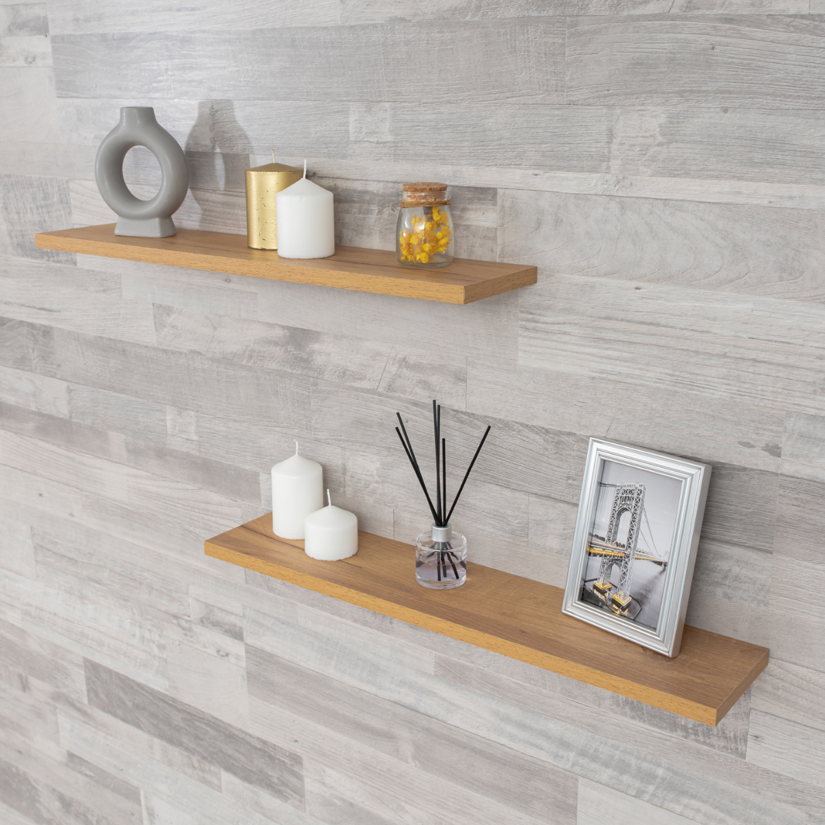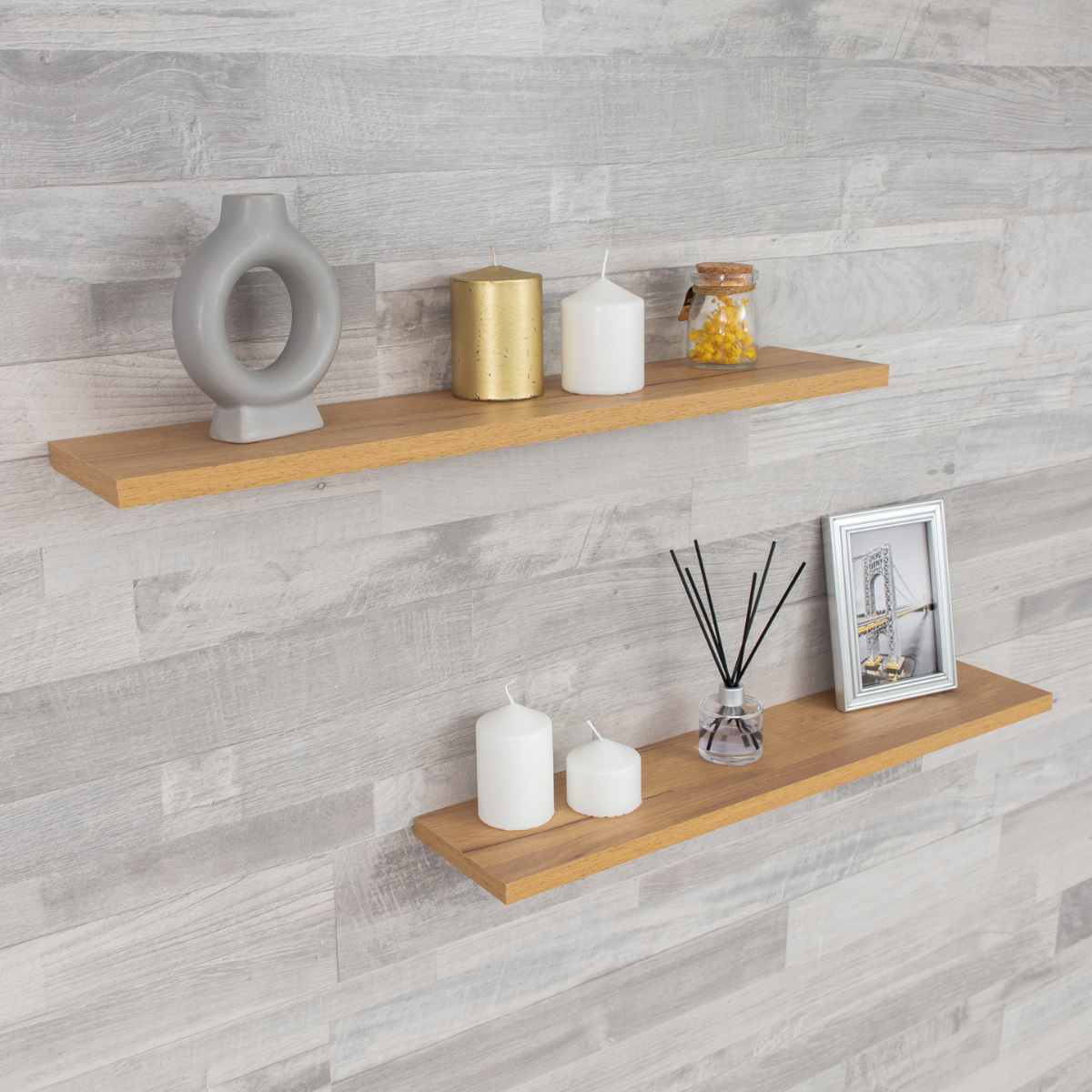 Полка настенная прямая навесная, со скрытым монтажом 2 шт дуб крафт, 80х20