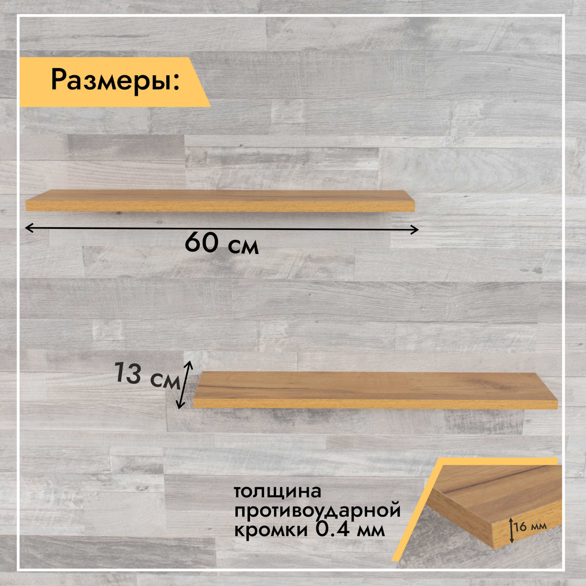 СохранитьПолка настенная прямая навесная, со скрытым монтажом 2 шт Дуб крафт золотой 60х13 см интересное: