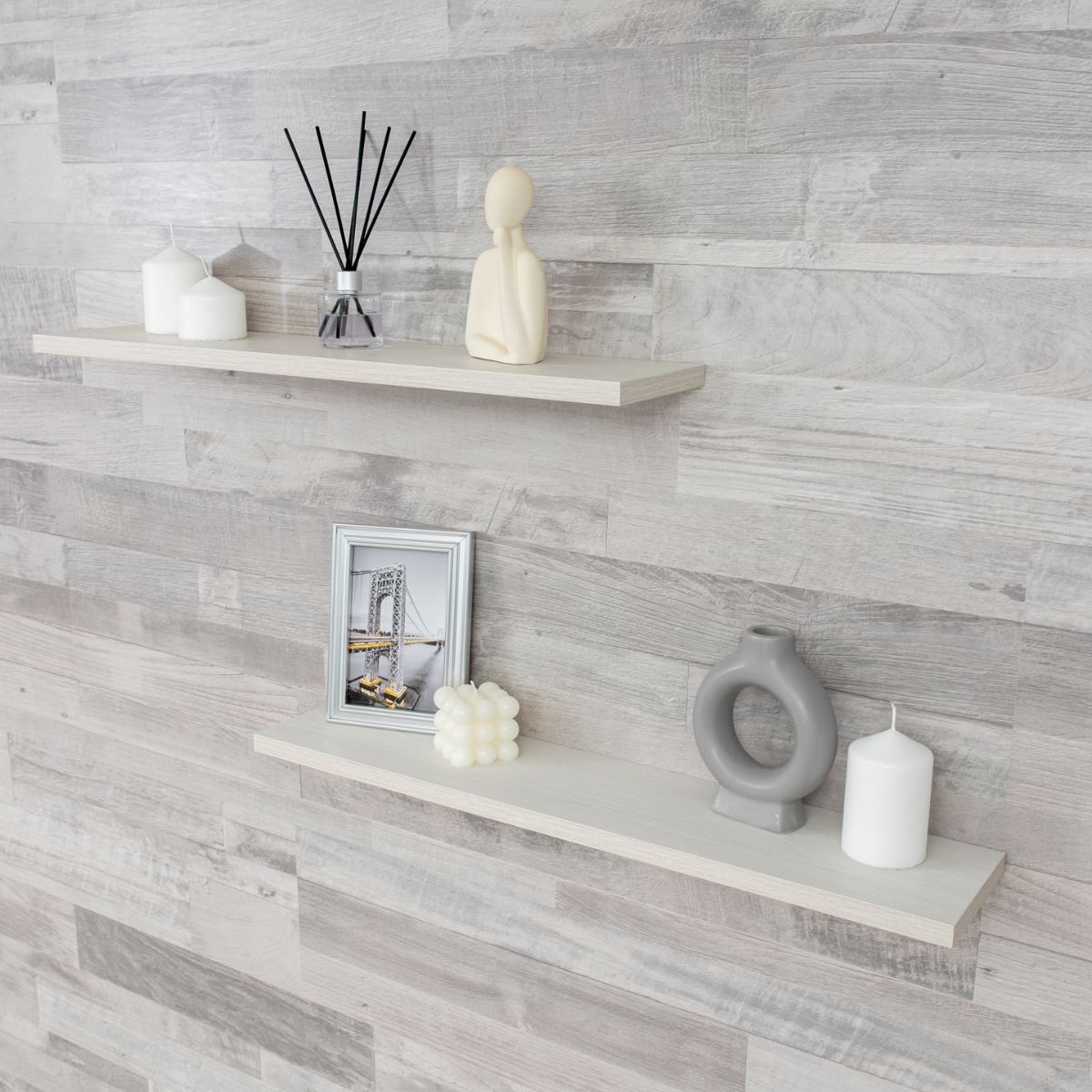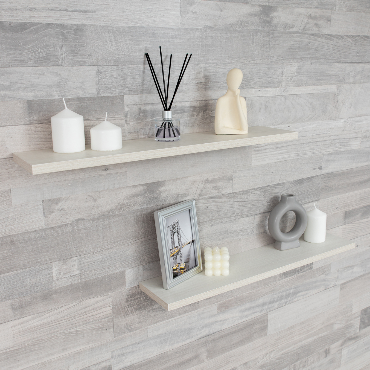 Полка настенная прямая навесная, со скрытым монтажом 2 шт, ясень светлый, 80х20