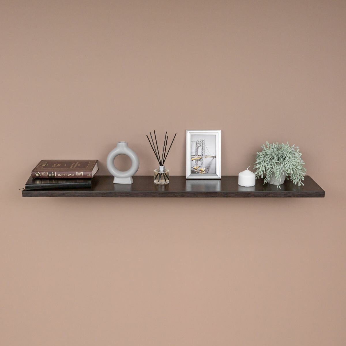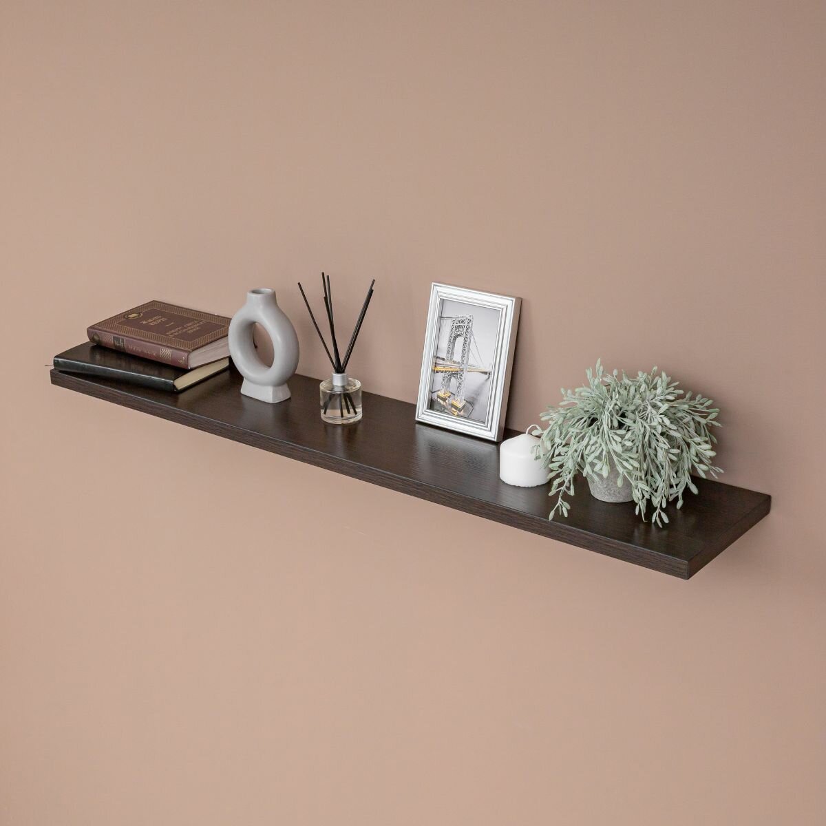 Полка настенная прямая навесная, со скрытым монтажом, венге, 80х20