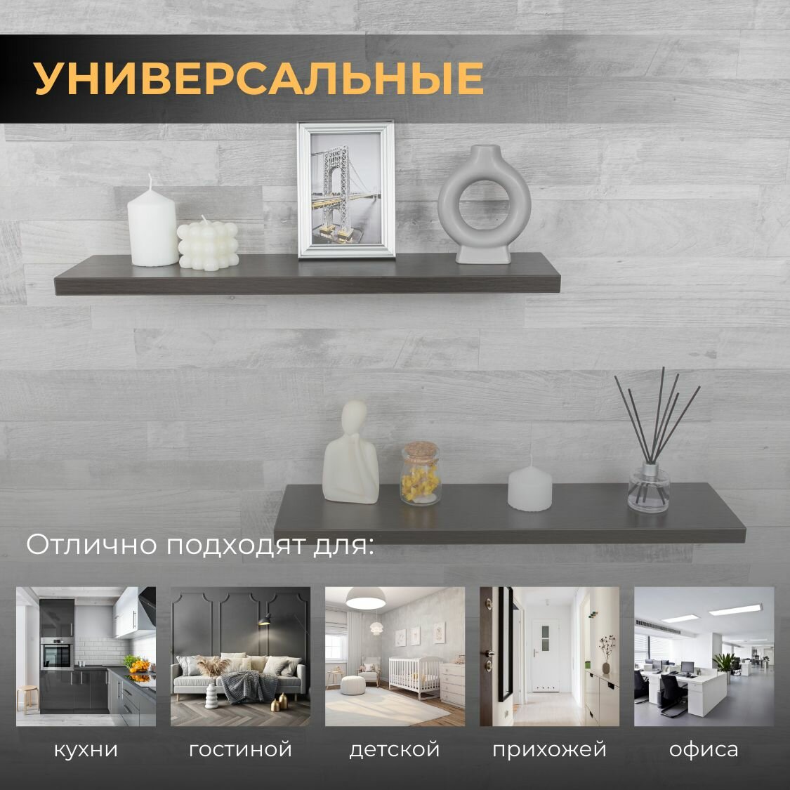 | Назначение | для гостиной/спальни / для детской / для икон / для книг / для кухни / для прихожей / для роутера / для специй / для фоторамок и сувенирной продукции / универсальное |