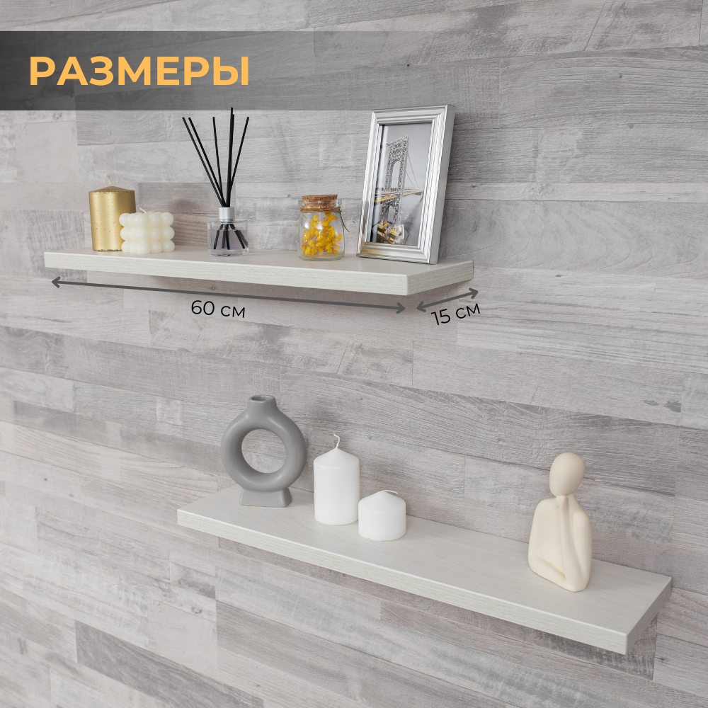 Купить Полка настенная прямая навесная, со скрытым монтажом 2 шт, ясень светлый, 60х15