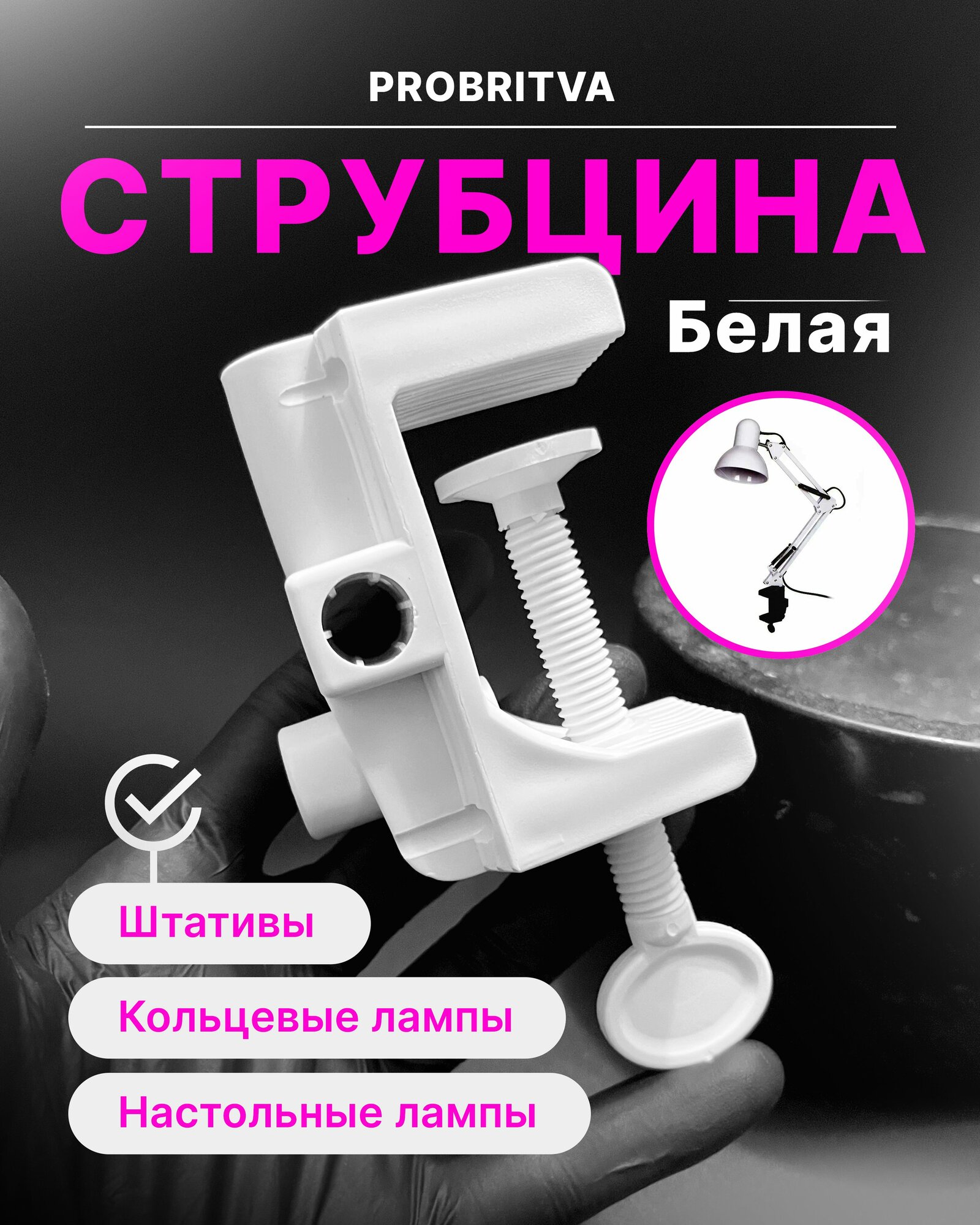Струбцина для настольной лампы пластиковая / Крепление для маникюрной лампы / Штатив светильника для освещения белый / Кронштейн зажимной интересное: