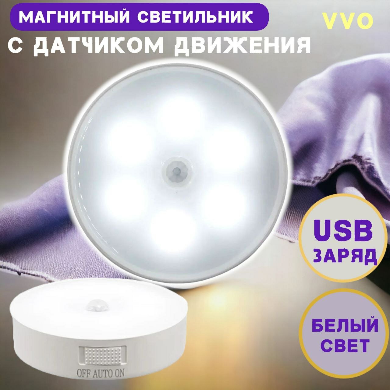Магнитный светильник VVO с датчиком движения без проводной USB заряд , режима холодный интересное: