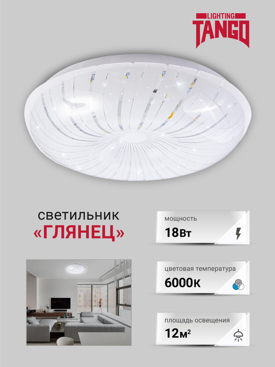 Светодиодный светильник "Глянец" 25х5,5 см, 18 Вт, 220 В, белый, пластик/металл, IP20 интересное: