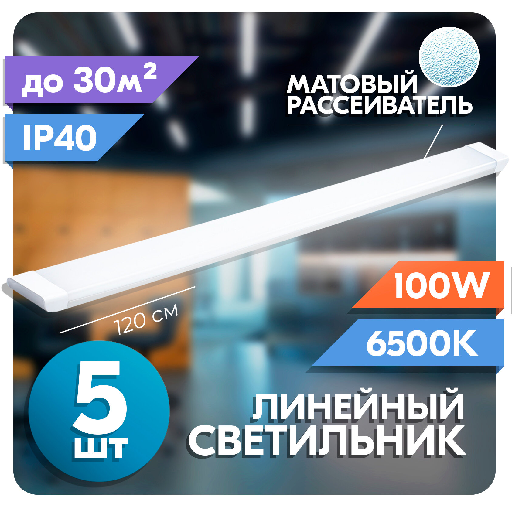 Светильник линейный светодиодный RSV 100 Вт, матовый рассеиватель, 6500K холодный свет, 120х75х25 мм, набор из 5 шт интересное: