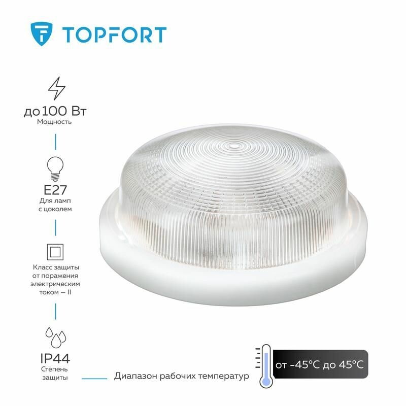 Светильник ЖКХ Topfort НБО 05-100-001 УХЛ2 Рондо IP44 белый интересное: