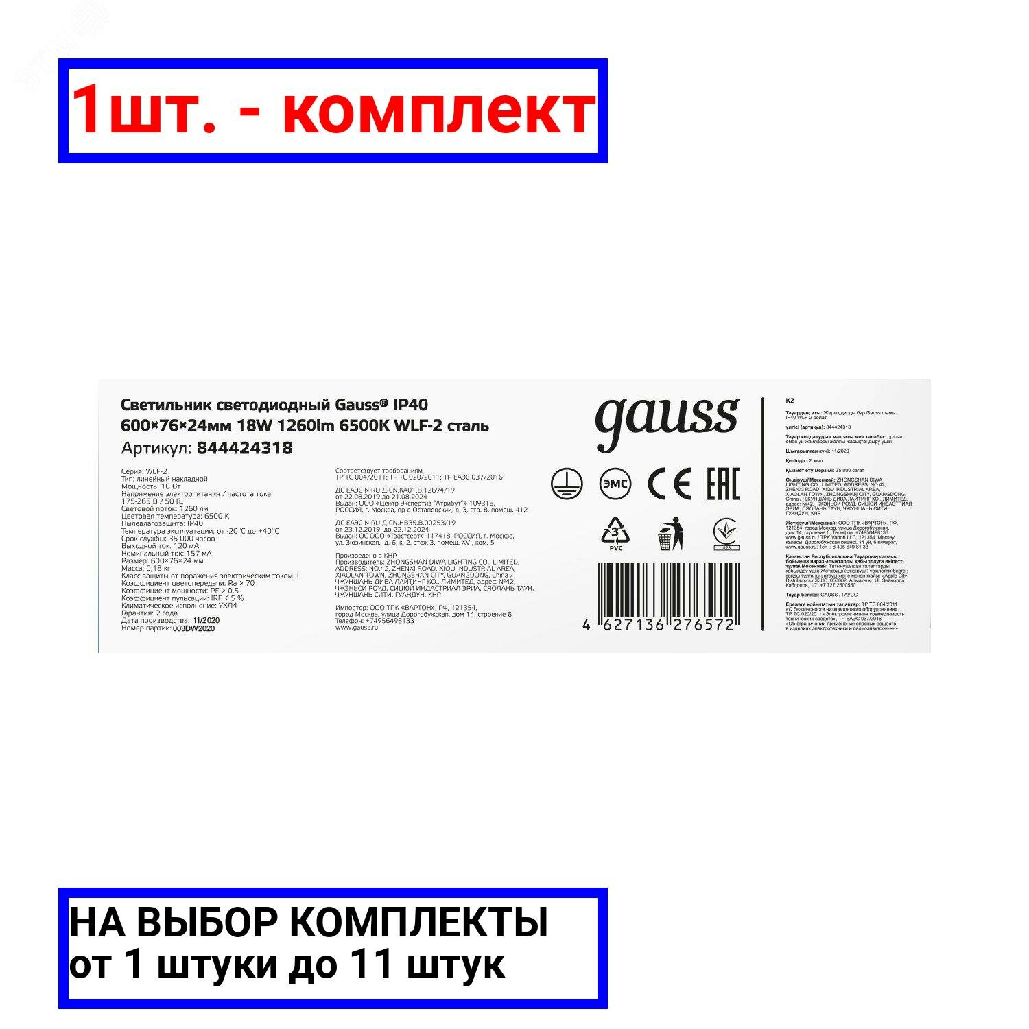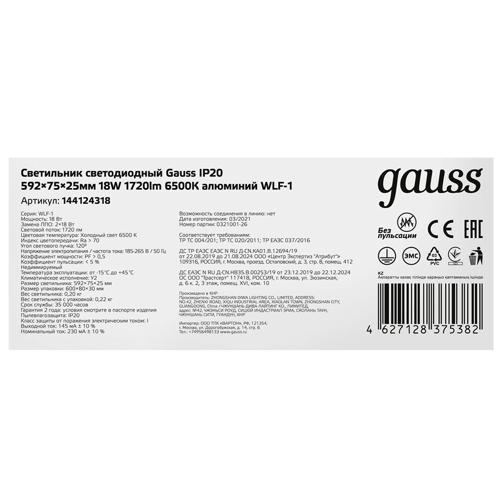 Светильник LED Gauss 18W 6500K 595*74*24мм 1170lm cталь IP20