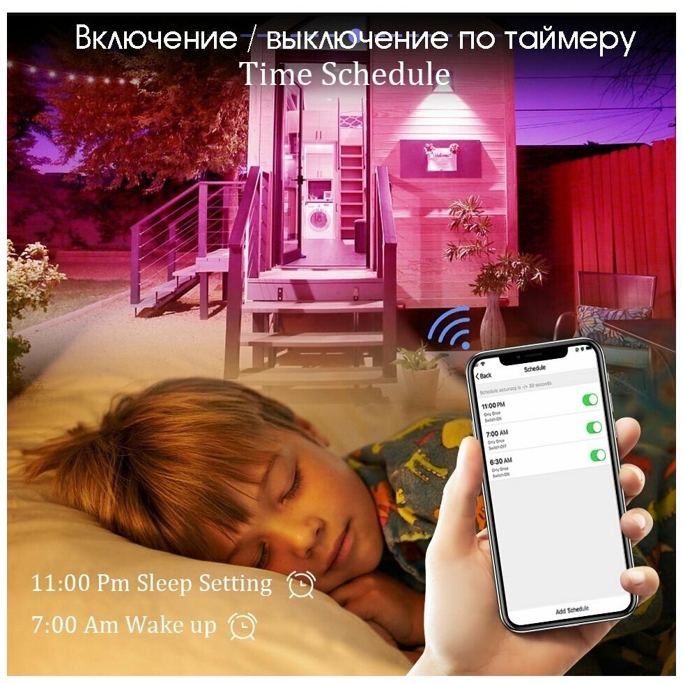 | Управление | датчик движения, таймер, управление со смартфона |