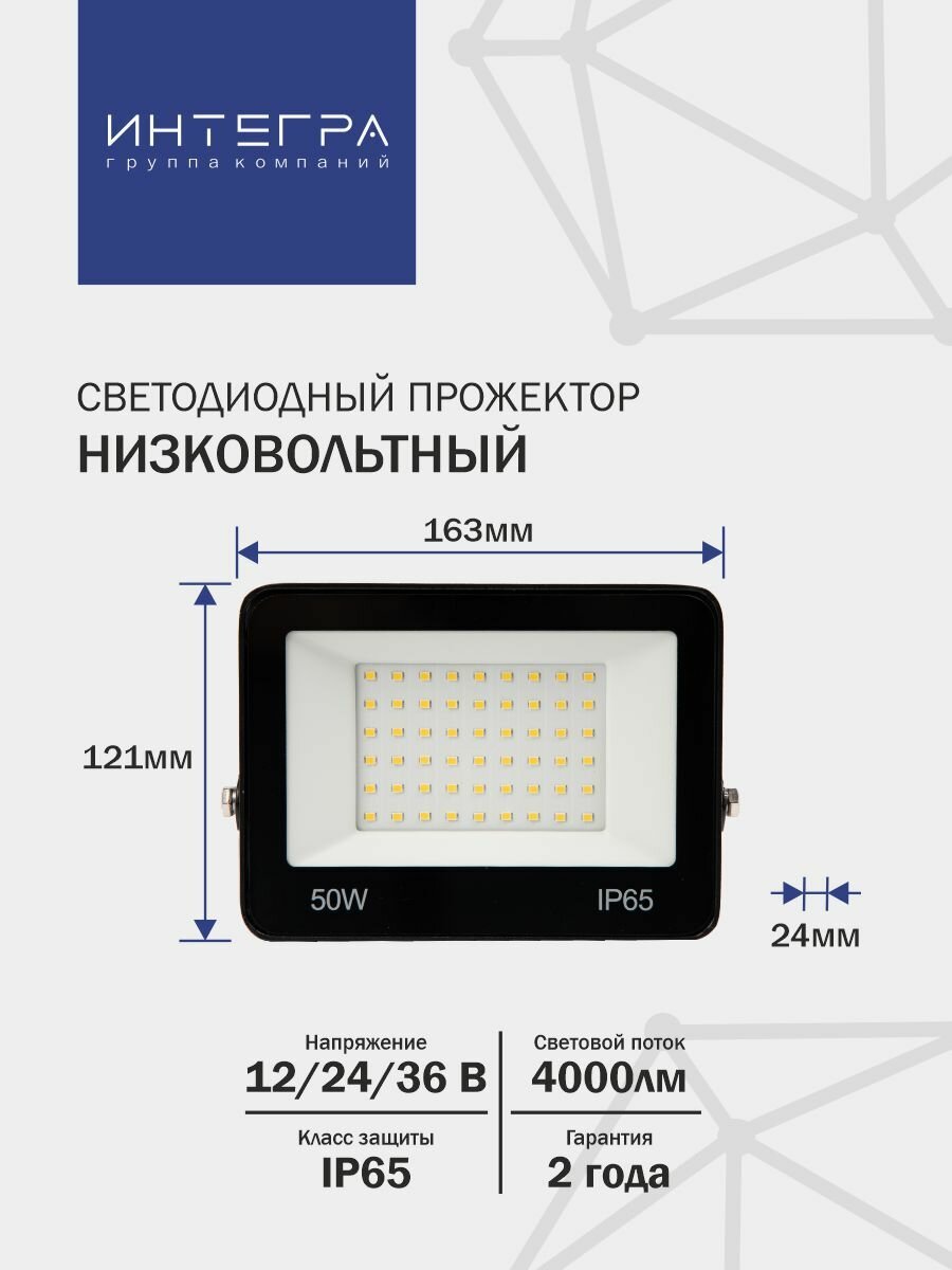 Светодиодный прожектор Низковольтный 50Вт 12/24/36 В (DC) 4500K интегра интересное: