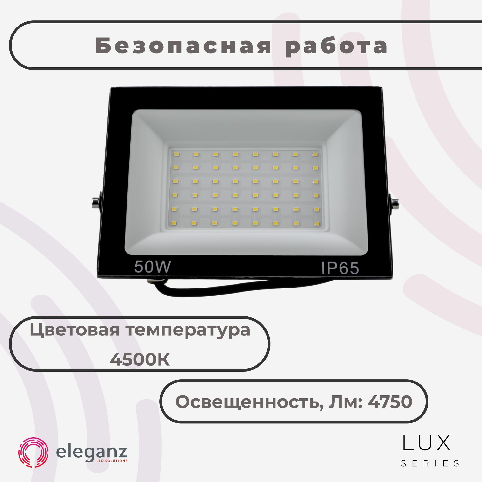 Купить Прожектор светодиодный уличный "Eleganz 50 Вт" от сети 220В, со степенью защиты IP65, алюминий, 4750Лм, 4500К, нейтрально-белого света