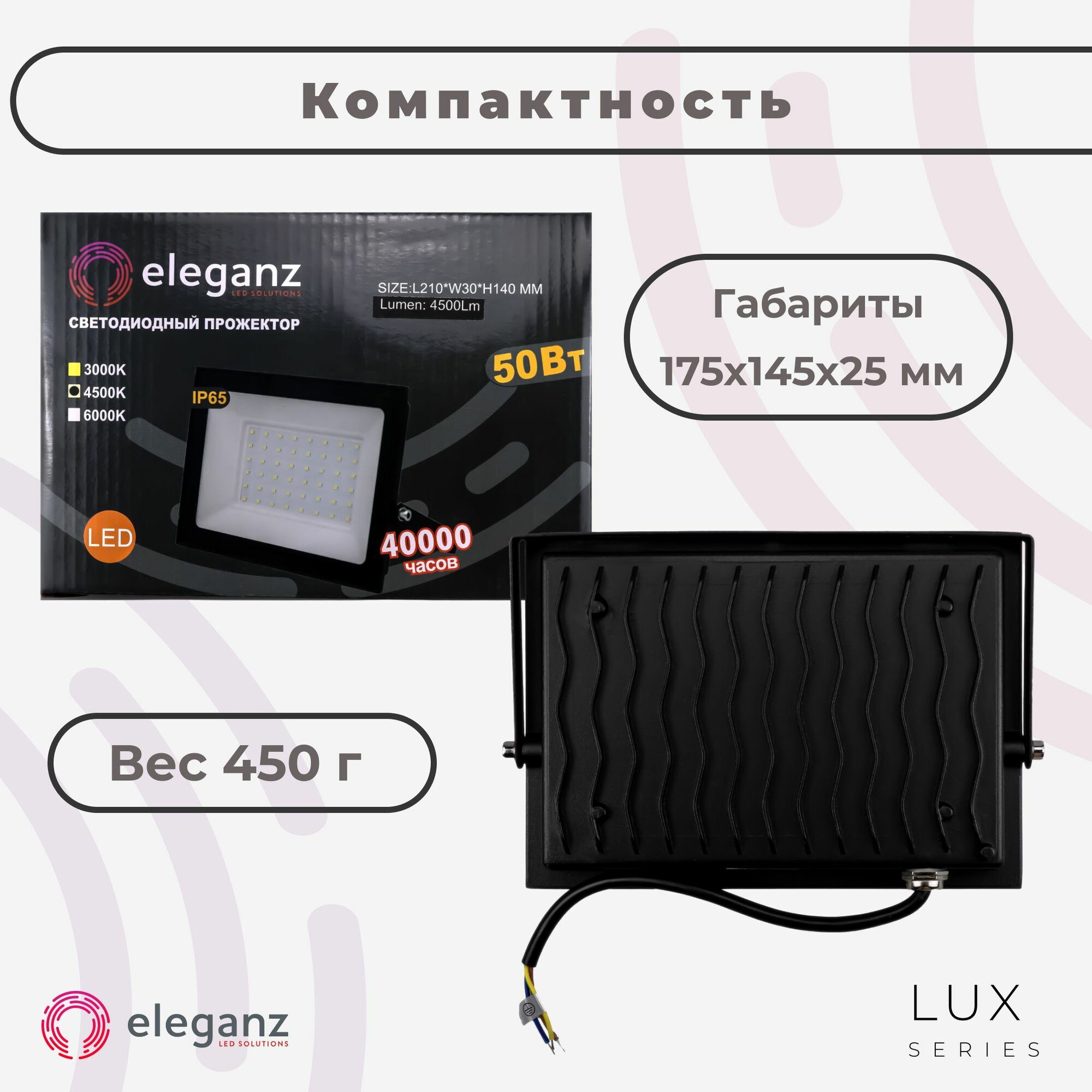 СохранитьПрожектор светодиодный уличный "Eleganz 50 Вт" от сети 220В, со степенью защиты IP65, алюминий, 4750Лм, 4500К, нейтрально-белого света интересное: