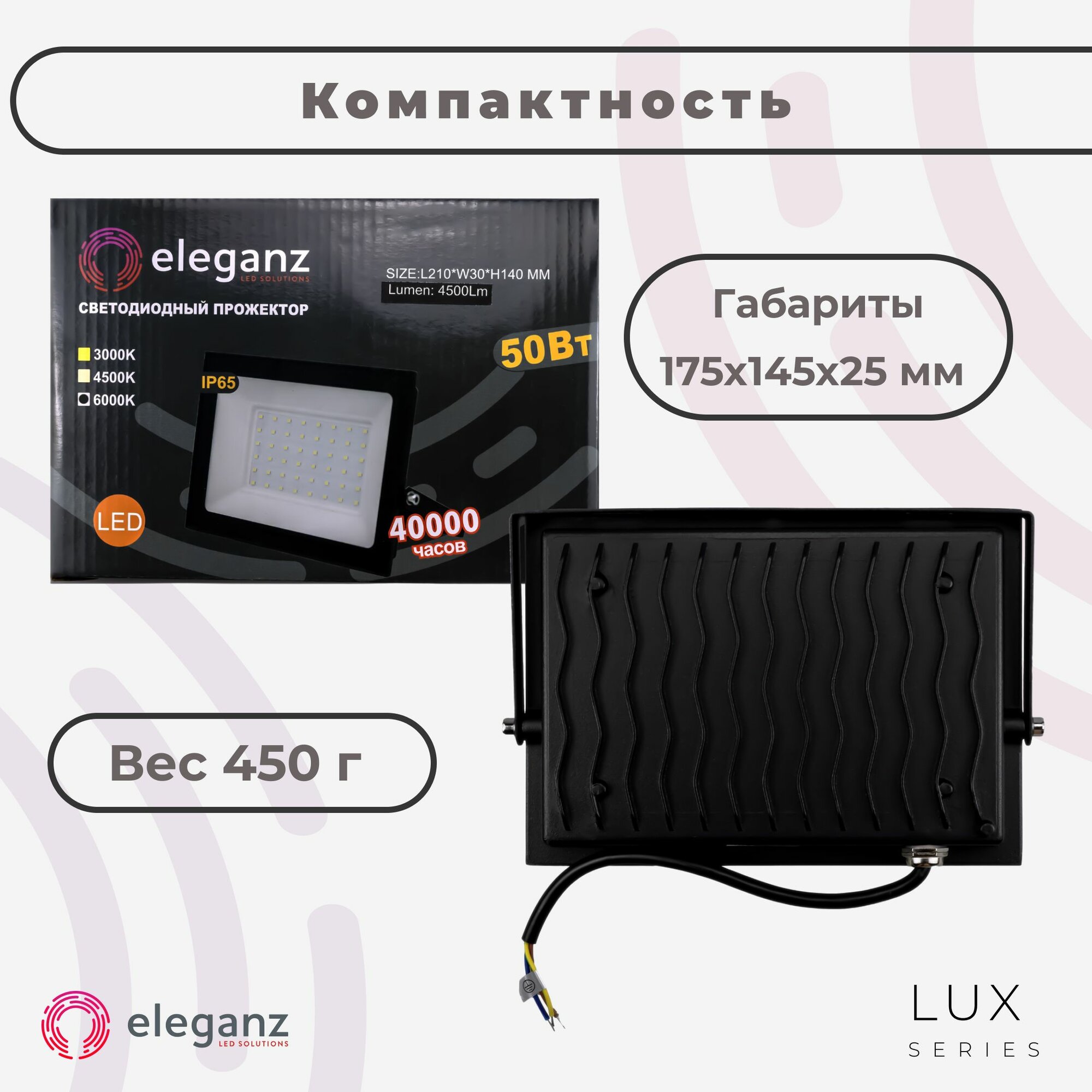 Прожектор светодиодный уличный "Eleganz 50 Вт" от сети 220В, со степенью защиты IP65, алюминий, 4750Лм, 4500К, нейтрально-белого света