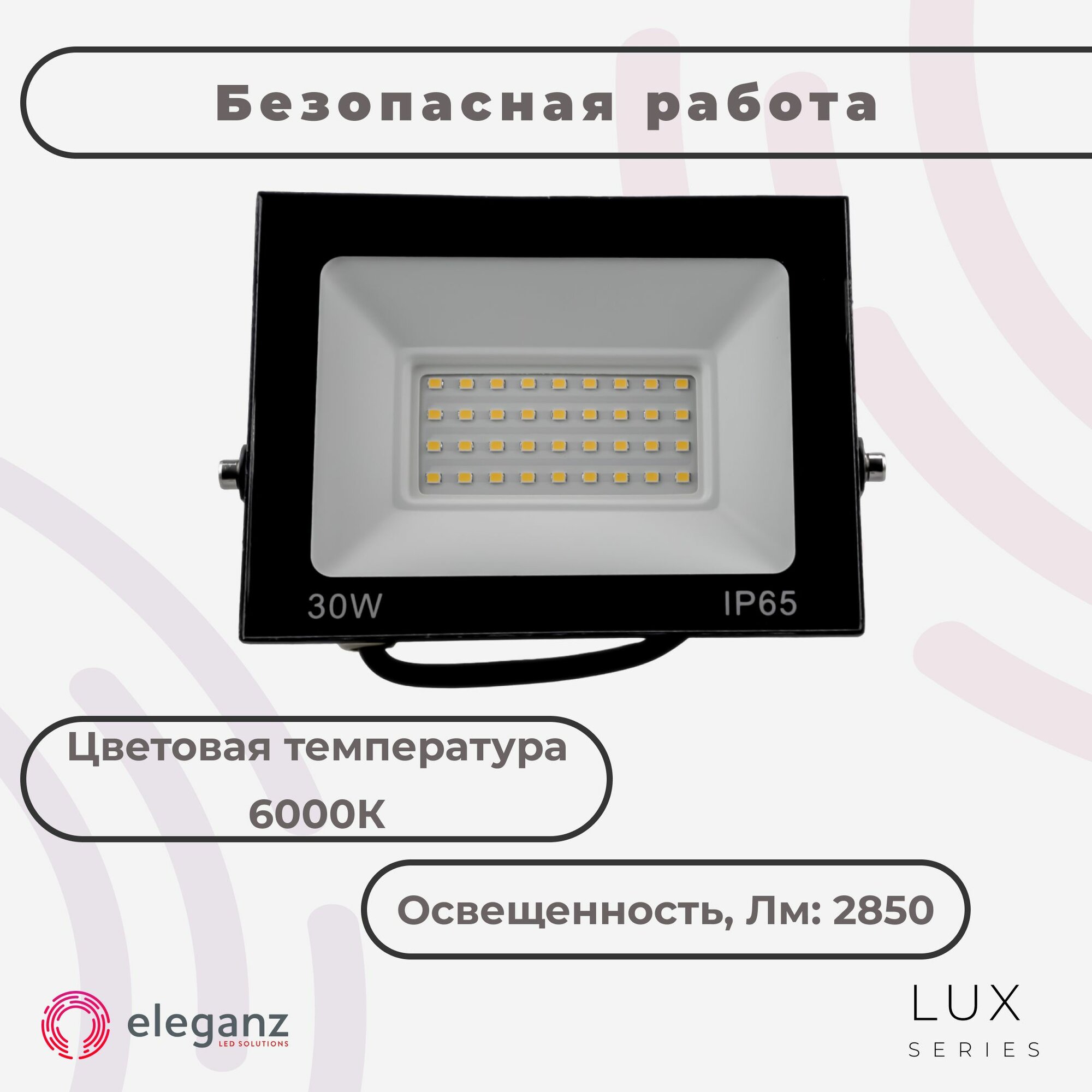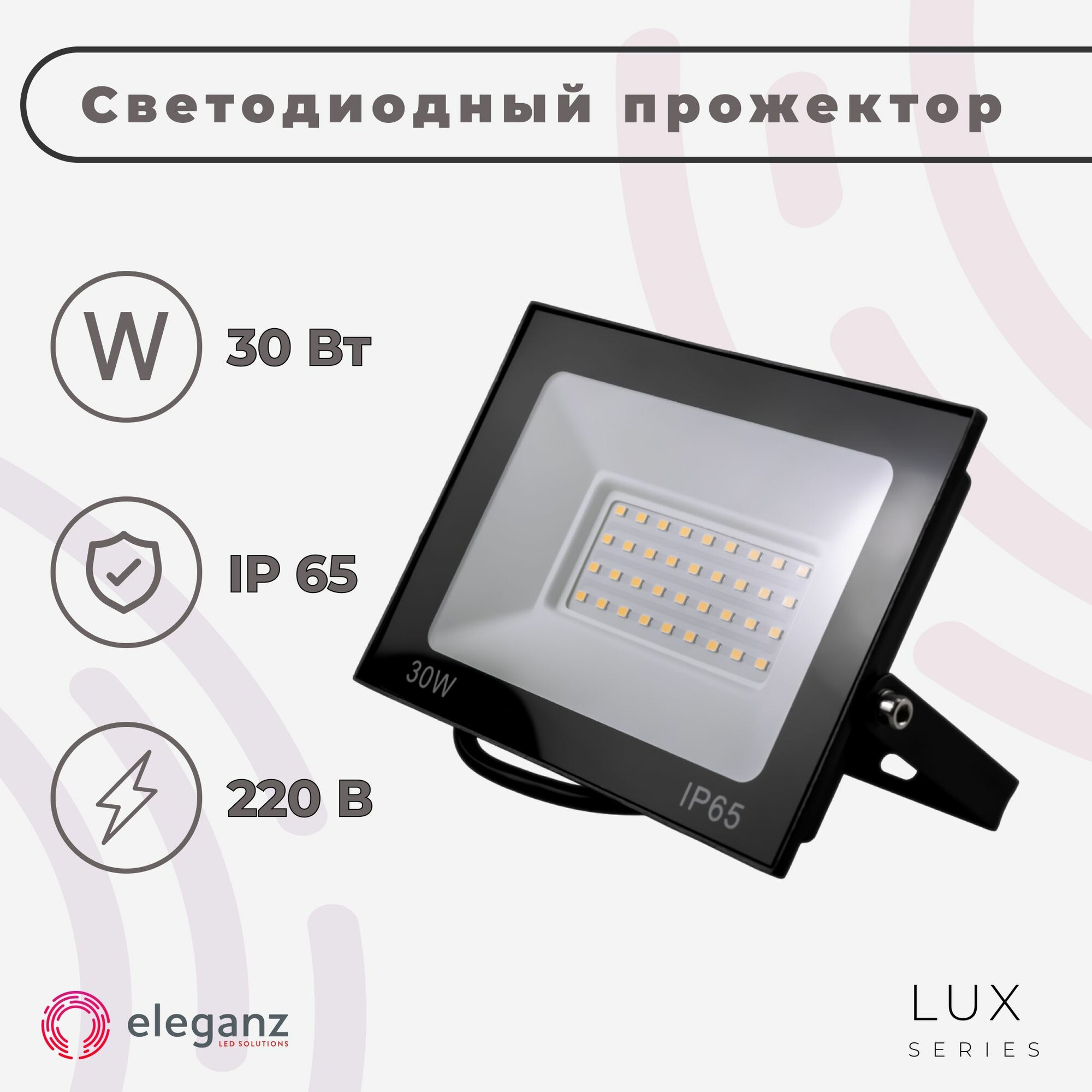 Купить Прожектор светодиодный уличный "Eleganz 30Вт" от сети 220В, со степенью защиты IP65, алюминий, 2850Лм, 6000К, холодно-белого света