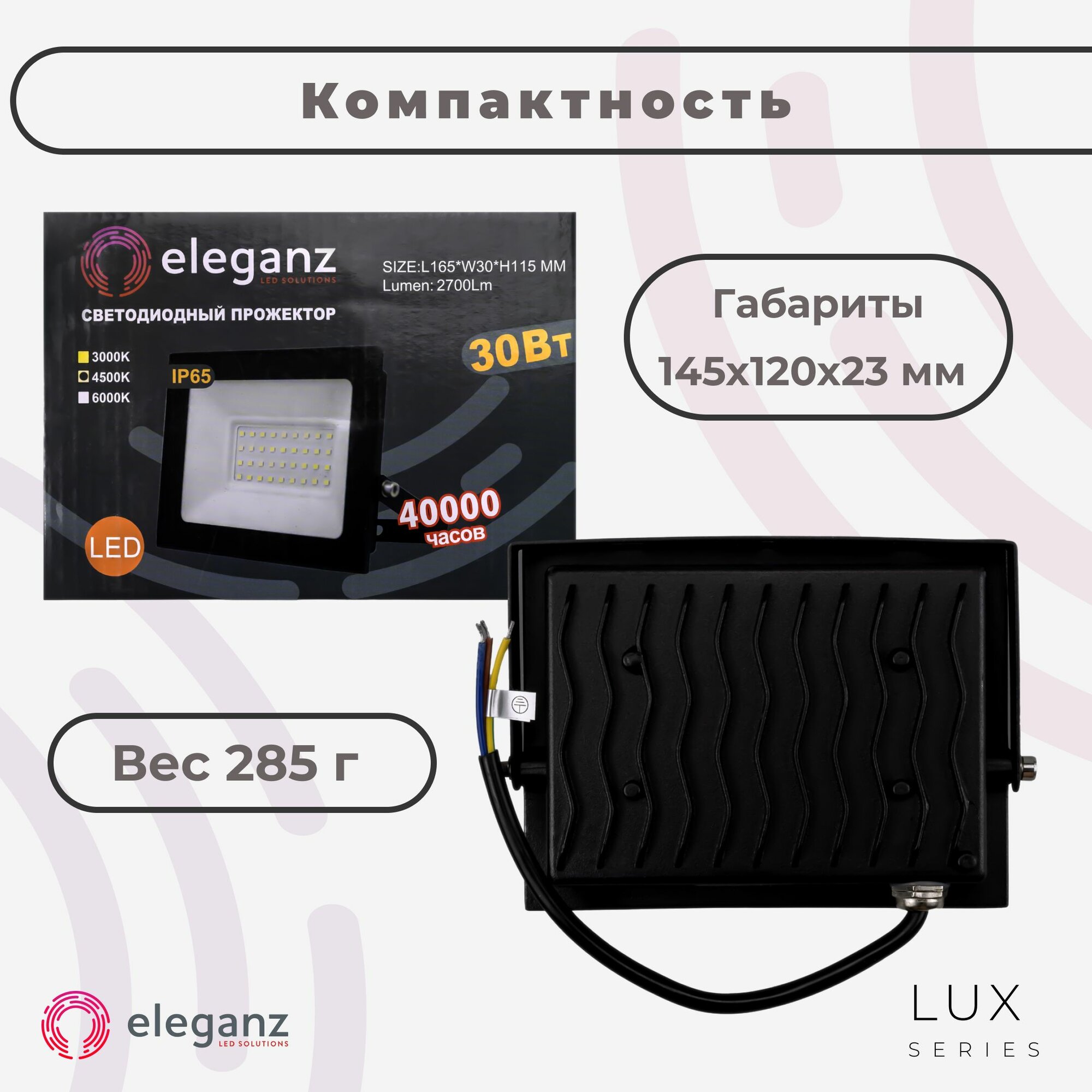 Купить Прожектор светодиодный уличный "Eleganz 30 Вт" от сети 220В, со степенью защиты IP65, алюминий, 2850Лм, 4500К, нейтрально-белого света