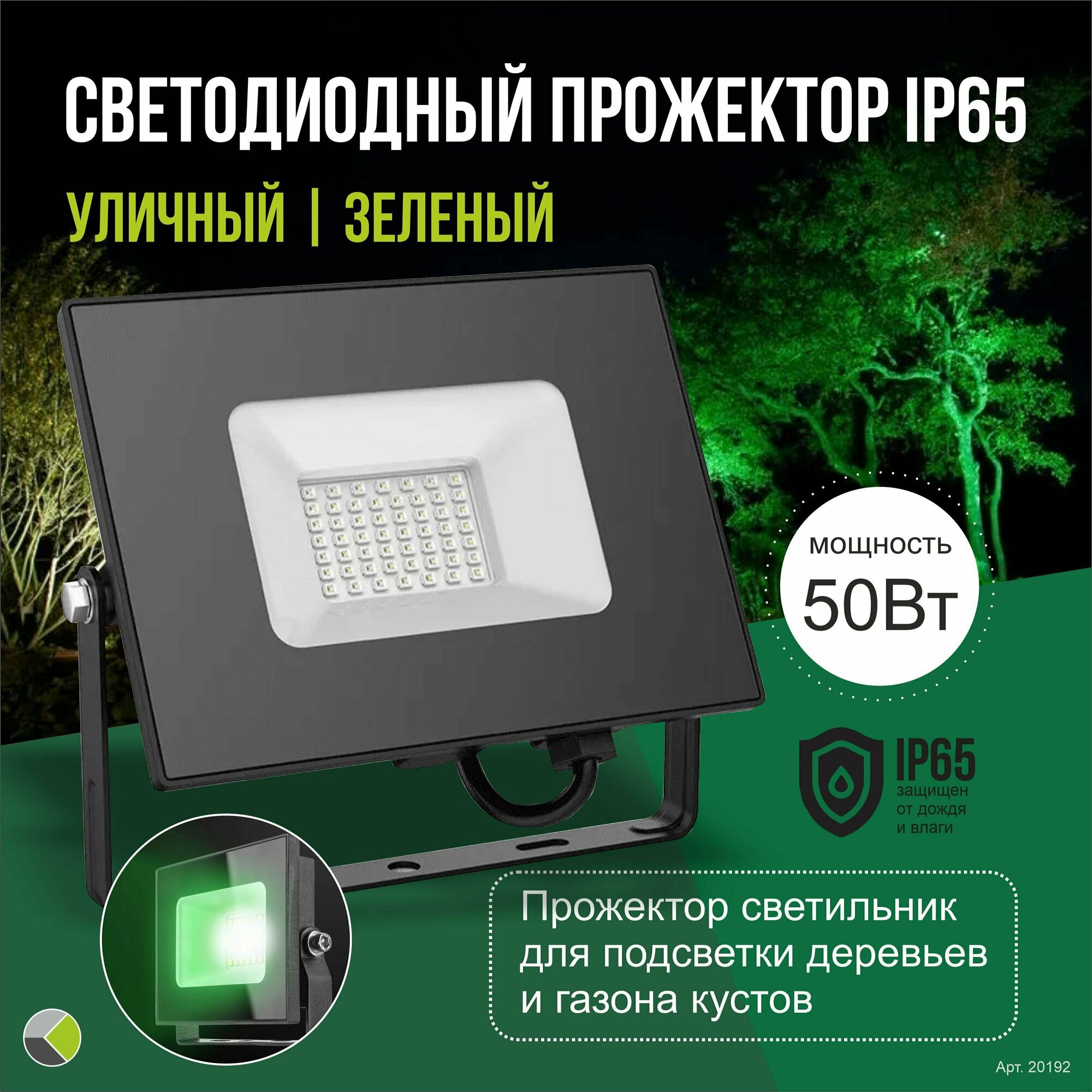 Прожектор светильник зеленый для подсветки деревьев газона кустов светодиодный 50Вт IP65 уличный интересное: