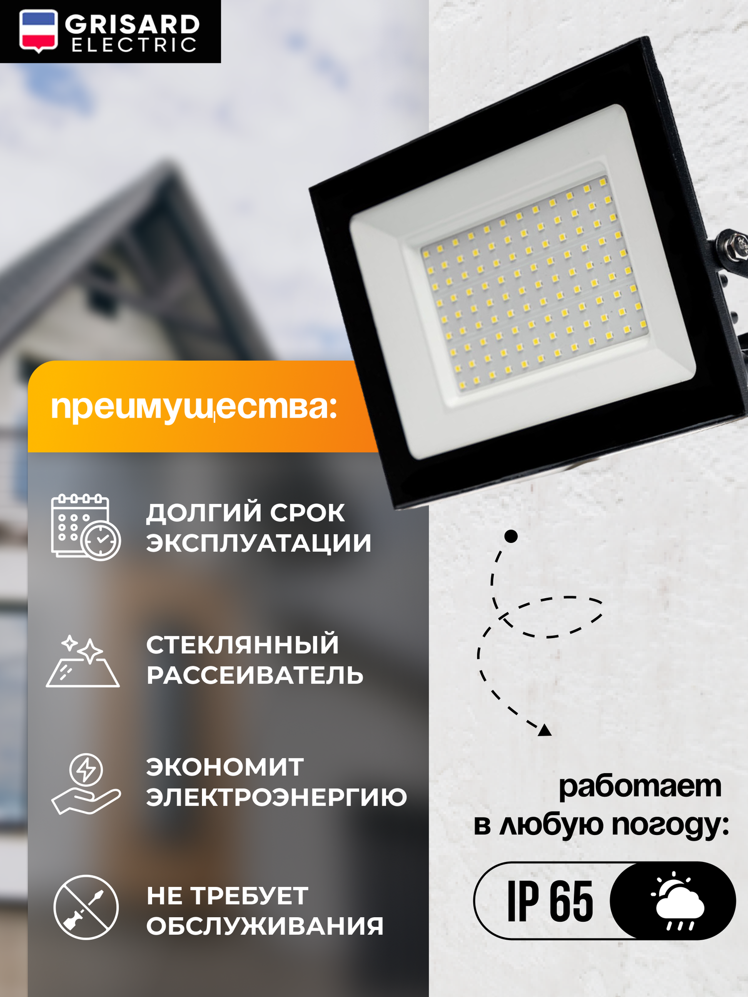 Прожектор уличный светодиодный СДО 100 черный IP65 6500 K интересное: