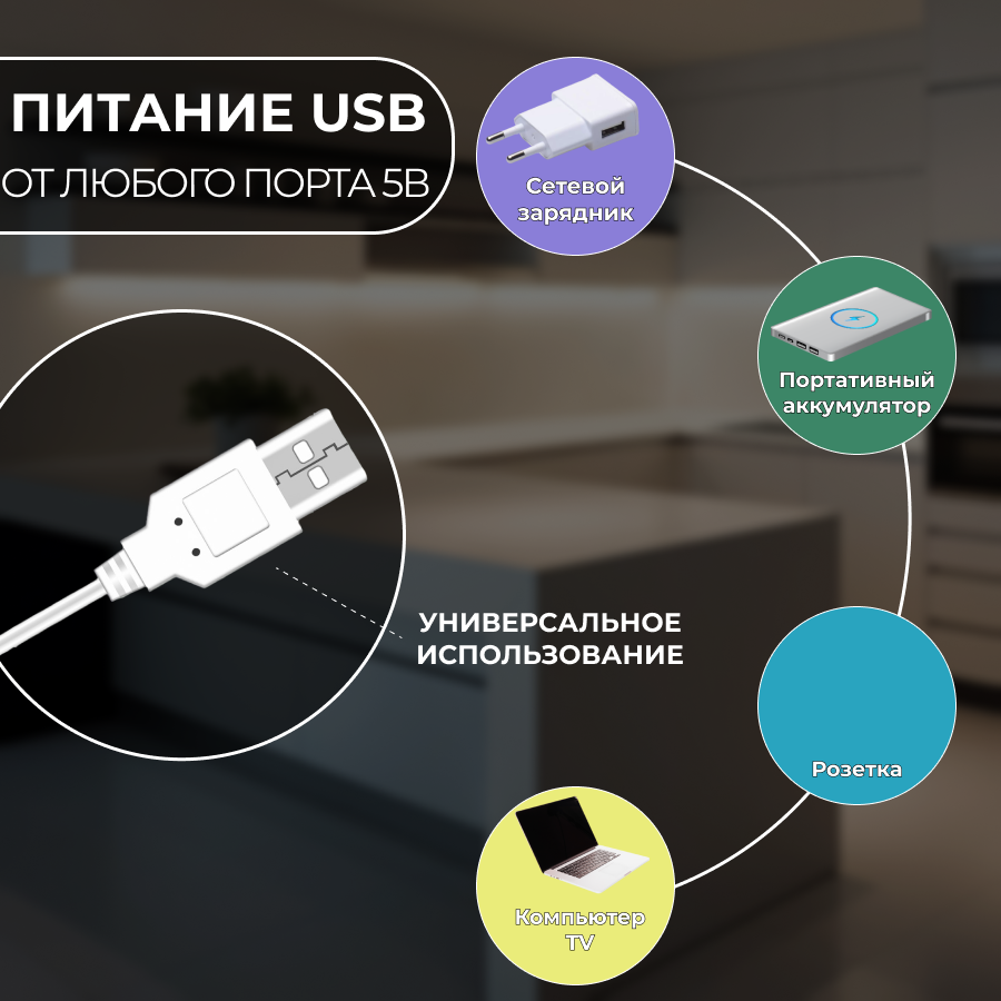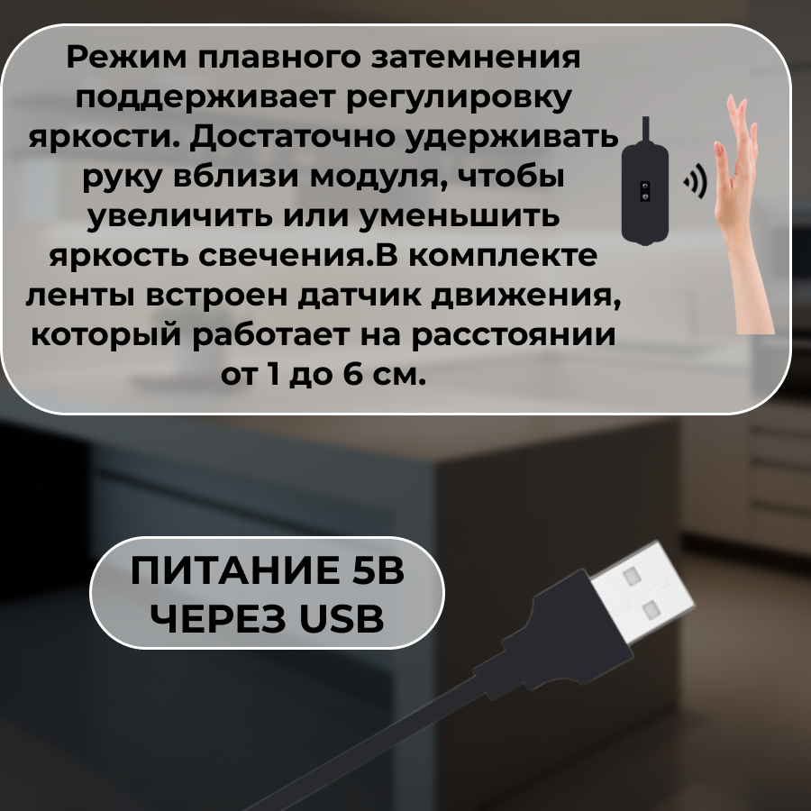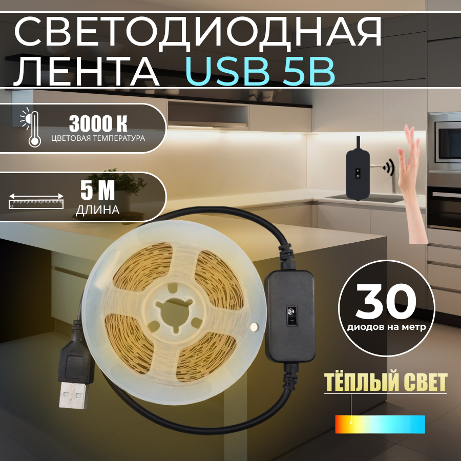 Светодиодная лента теплый белый свет с бесконтактным выключателем, 5 метров, IP20, USB 5В интересное: