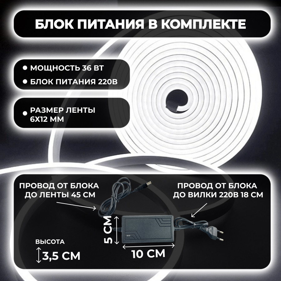 Неоновая светодиодная лента, холодный белый свет, 5 метров, с блоком питания, гибкий неон интересное: