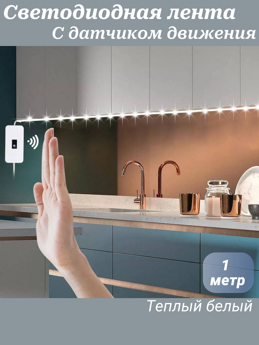 Купить Светодиодная лента с датчиком движения 1 метр, с диммером теплый белый свет, подсветка для телевизора, кухни, питание 5 В от USB