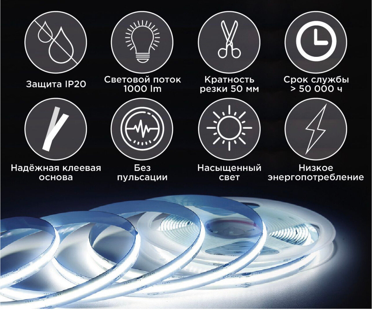 | Особенности | возможность подключения диммера / самоклеящаяся основа |