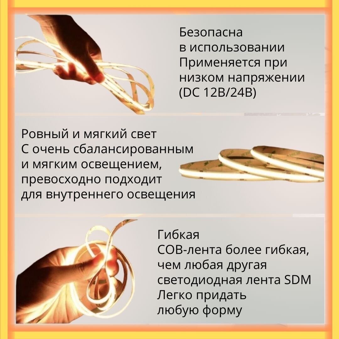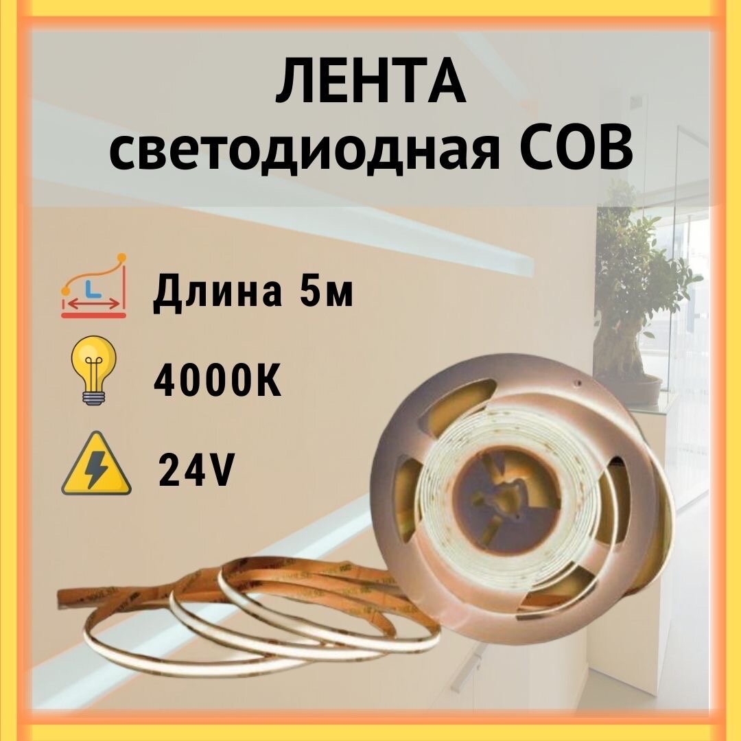 Светодиодная лента COB сплошного свечения ,Нейтральный свет 4000К, 24вольт ,320 Leds/m интересное: