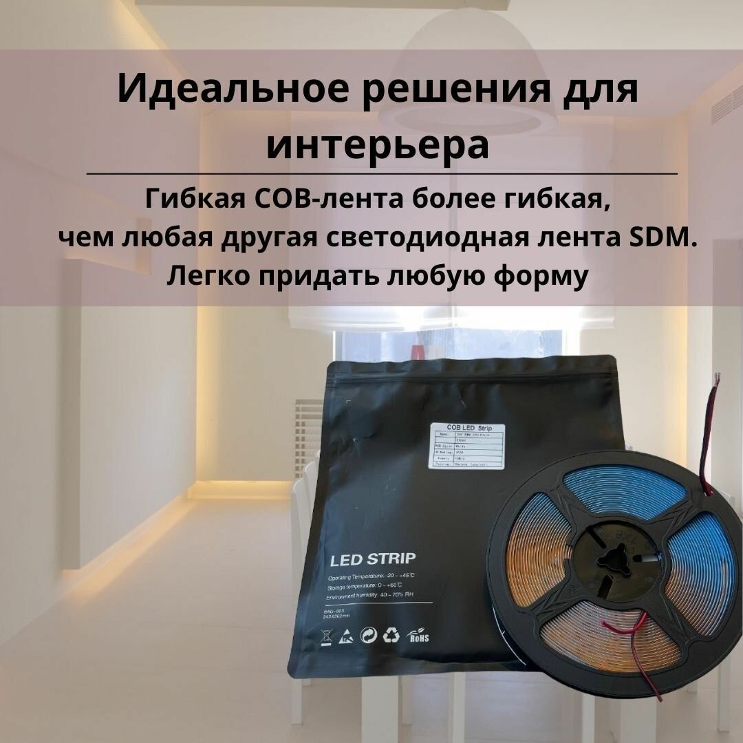 Светодиодная лента COB сплошного свечения ,Нейтральный свет 4000К, 24вольт ,320 Leds/m