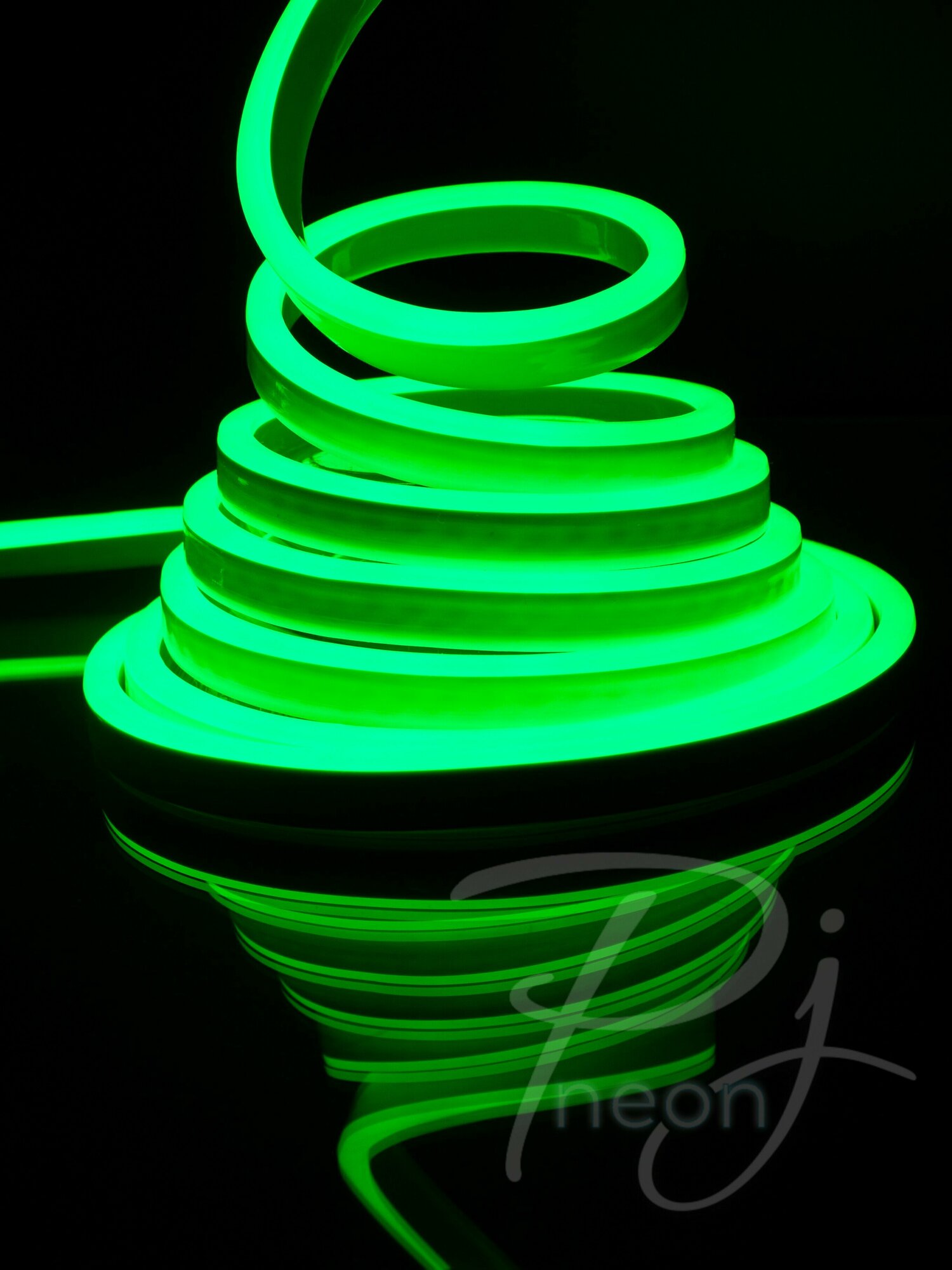PJ Neon, Неоновая светодиодная лента для улицы и помещения - гибкий неон 20м, 8х16мм, 220В, 120 LED/m, IP 67, зеленый