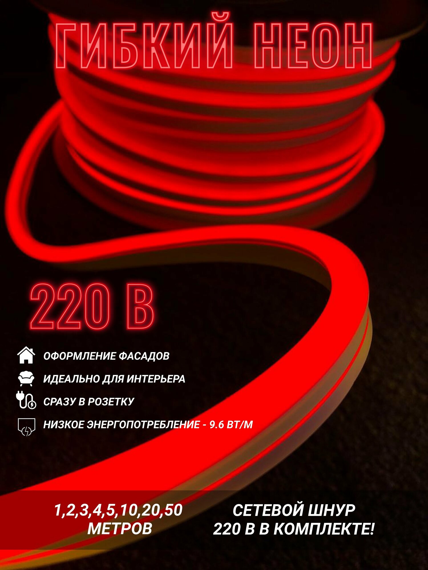 | Комплектация | Гибкий неон - 6м Заглушка Коннектор для подключения к сети - 1шт |