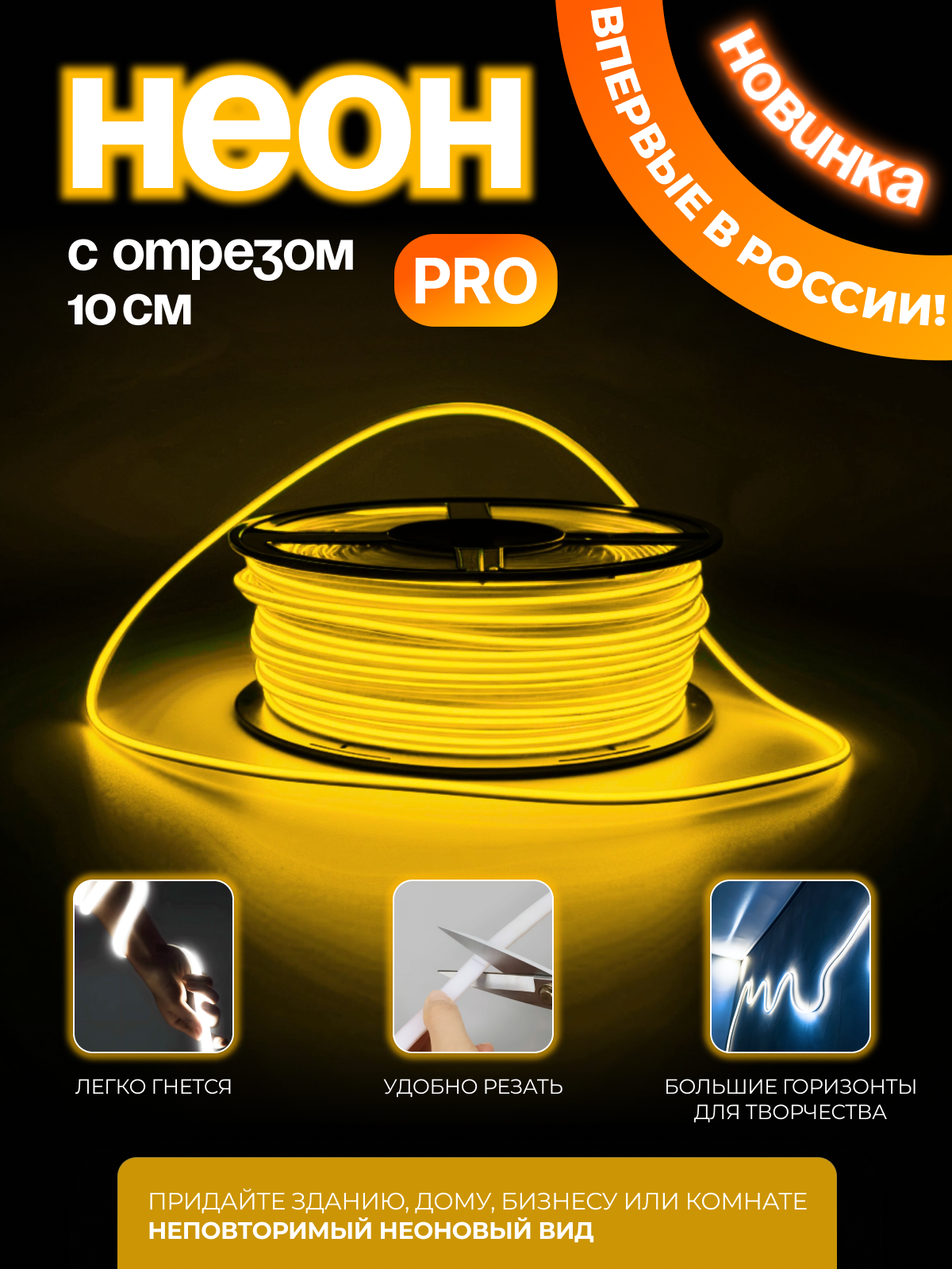СохранитьНеоновая светодиодная лента PJ Neon 5м, 8х16мм, 220В, IP 67, гибкий неон, желтый, кратность реза 10 см интересное: