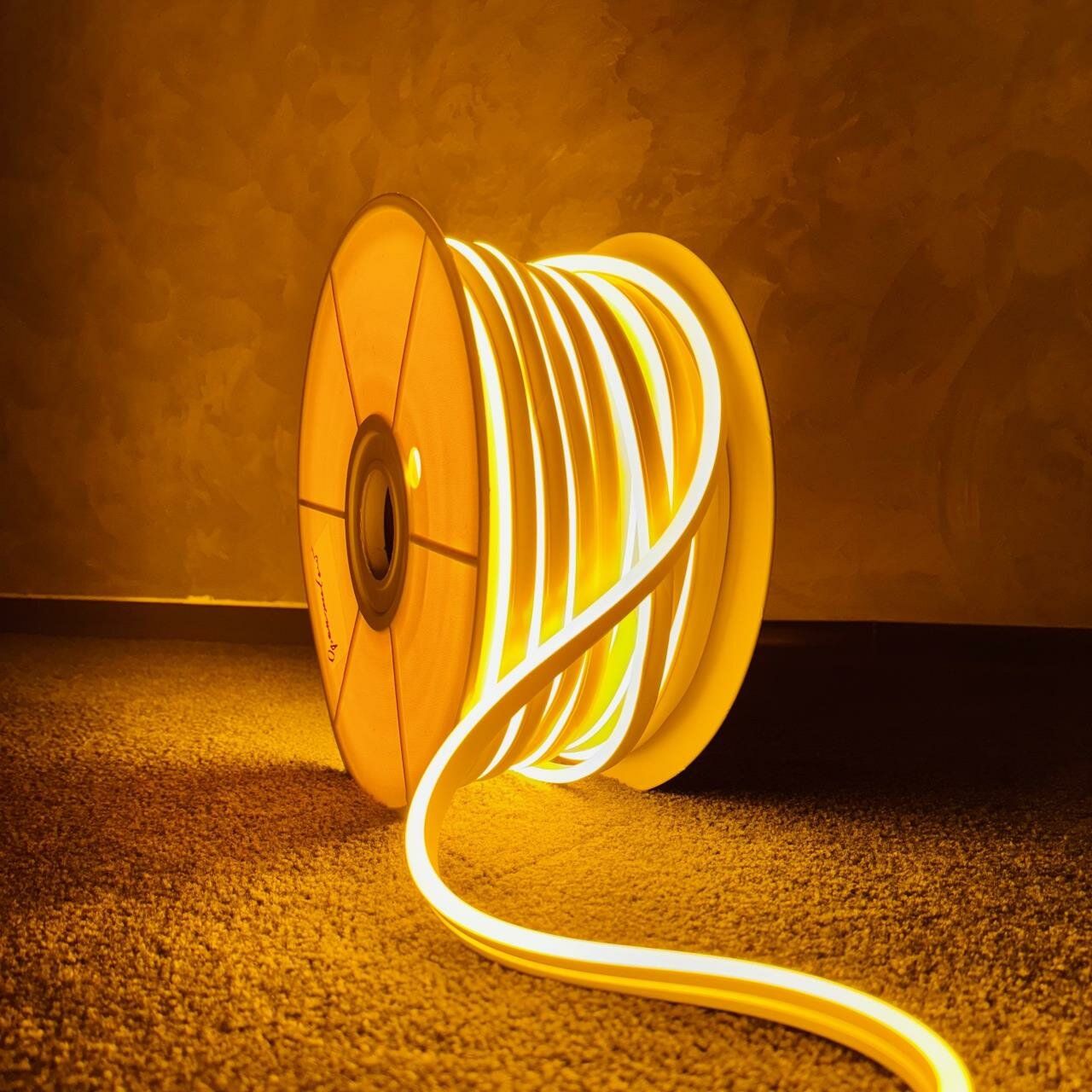 Неоновая светодиодная лента PJ Neon 12м, 8х16мм, 220В, 120 LED/m, IP 67, гибкий неон, лимонный, кратность реза 10 см