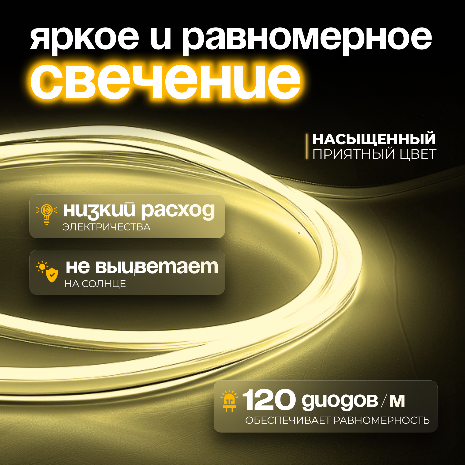 Неоновая светодиодная лента PJ Neon 1м, 8х16мм, 220В, 120 LED/m, IP 67, гибкий неон, теплый белый, кратность реза 10 см