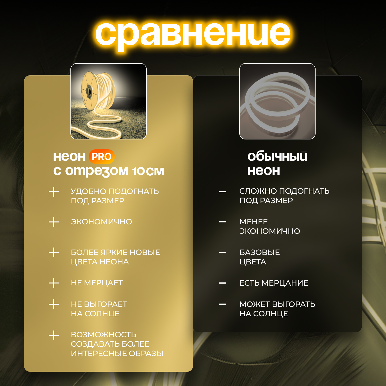 | Комплектация | Гибкий неон - 10м; Заглушки - 1 шт; Коннектор для подключения к сети - 1шт |