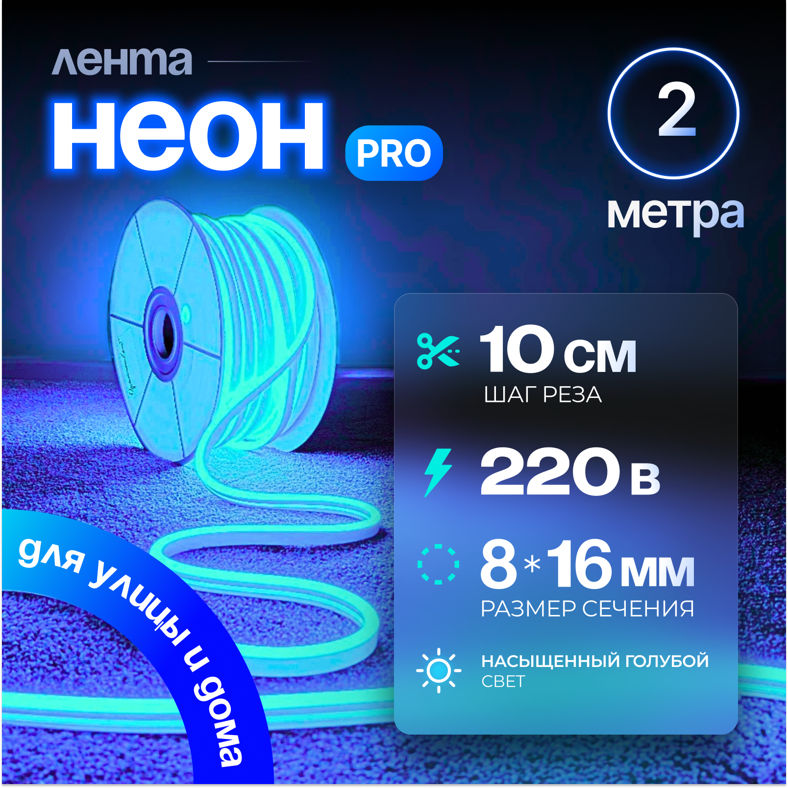 СохранитьНеоновая светодиодная лента PJ Neon 2м, 8х16мм, 220В, IP 67, гибкий неон, голубой, кратность реза 10 см интересное: