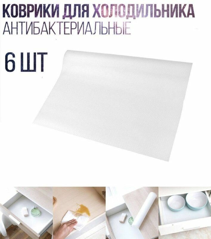 Коврик для кухонных полок 6 шт Белый / Прозрачный, ящиков, холодильника, 45х30 см интересное: