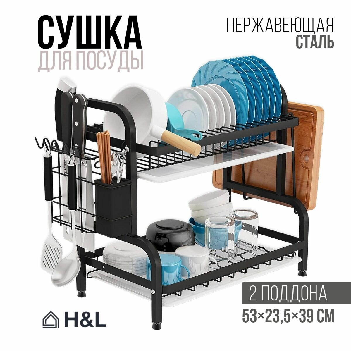 Сушилка для посуды настольная. Этажерка для кухни. Черная подставка для посуды. интересное: