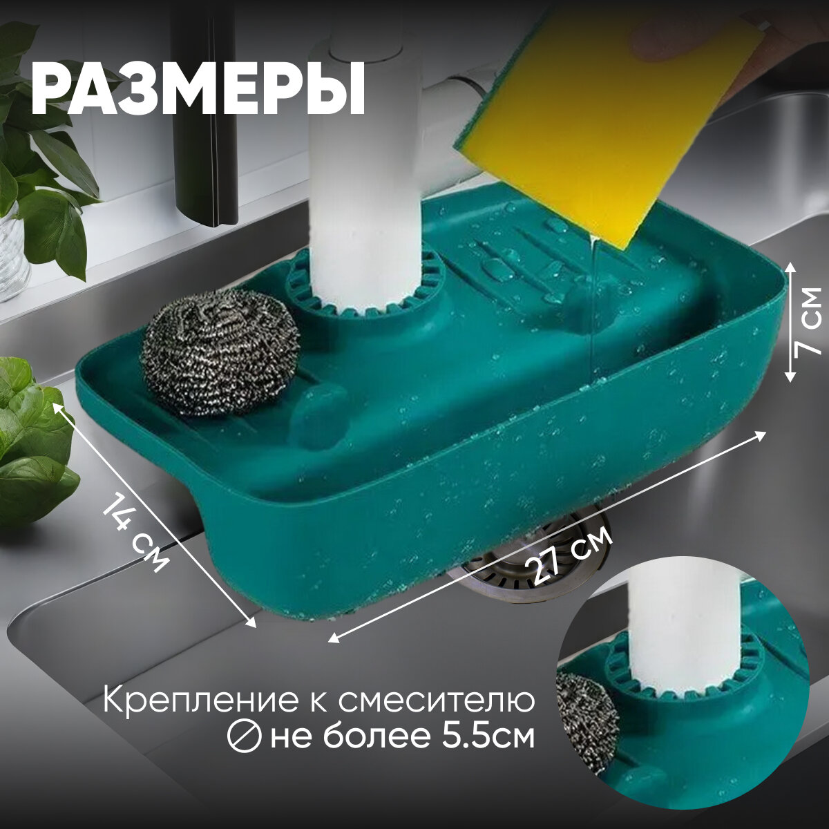 Рейлинг для кухни. Держатель для губки в раковину силиконовый, подвесной, на кухонный кран для мыла и моющих средств на мойку, на раковину. интересное: