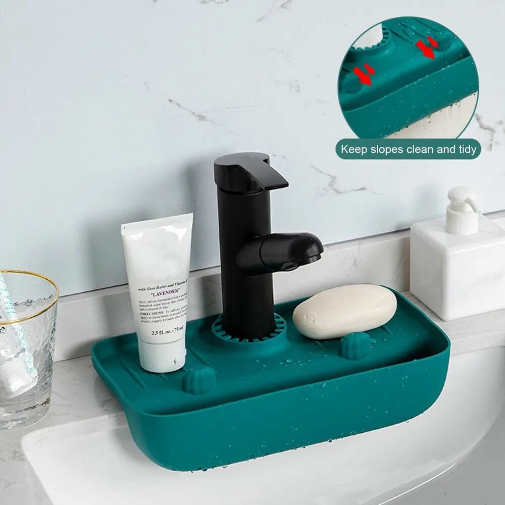 Держатель кухонный для губки и мыла на раковину, коврик-органайзер на кухонный кран для губки и моющих средств силиконовый универсальный