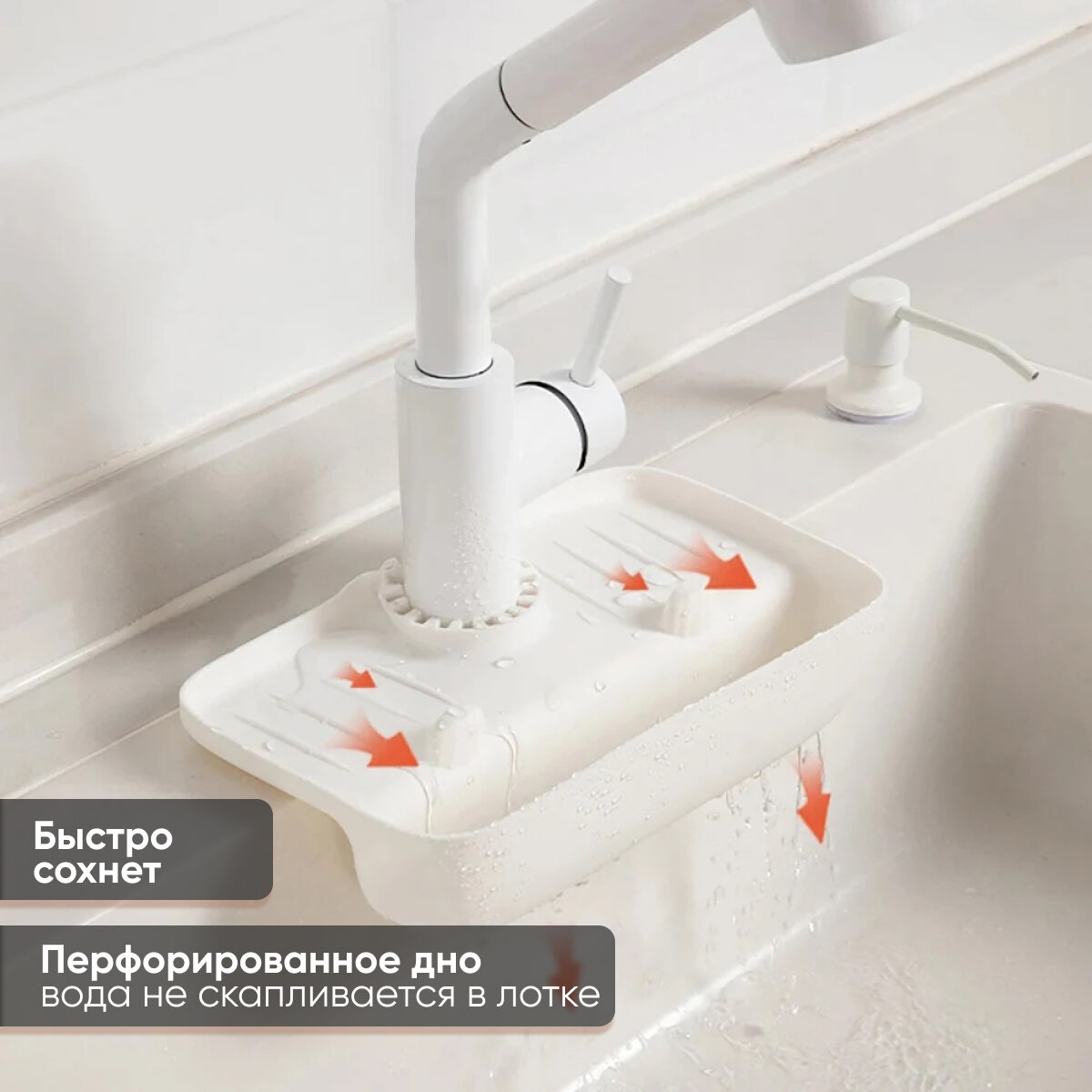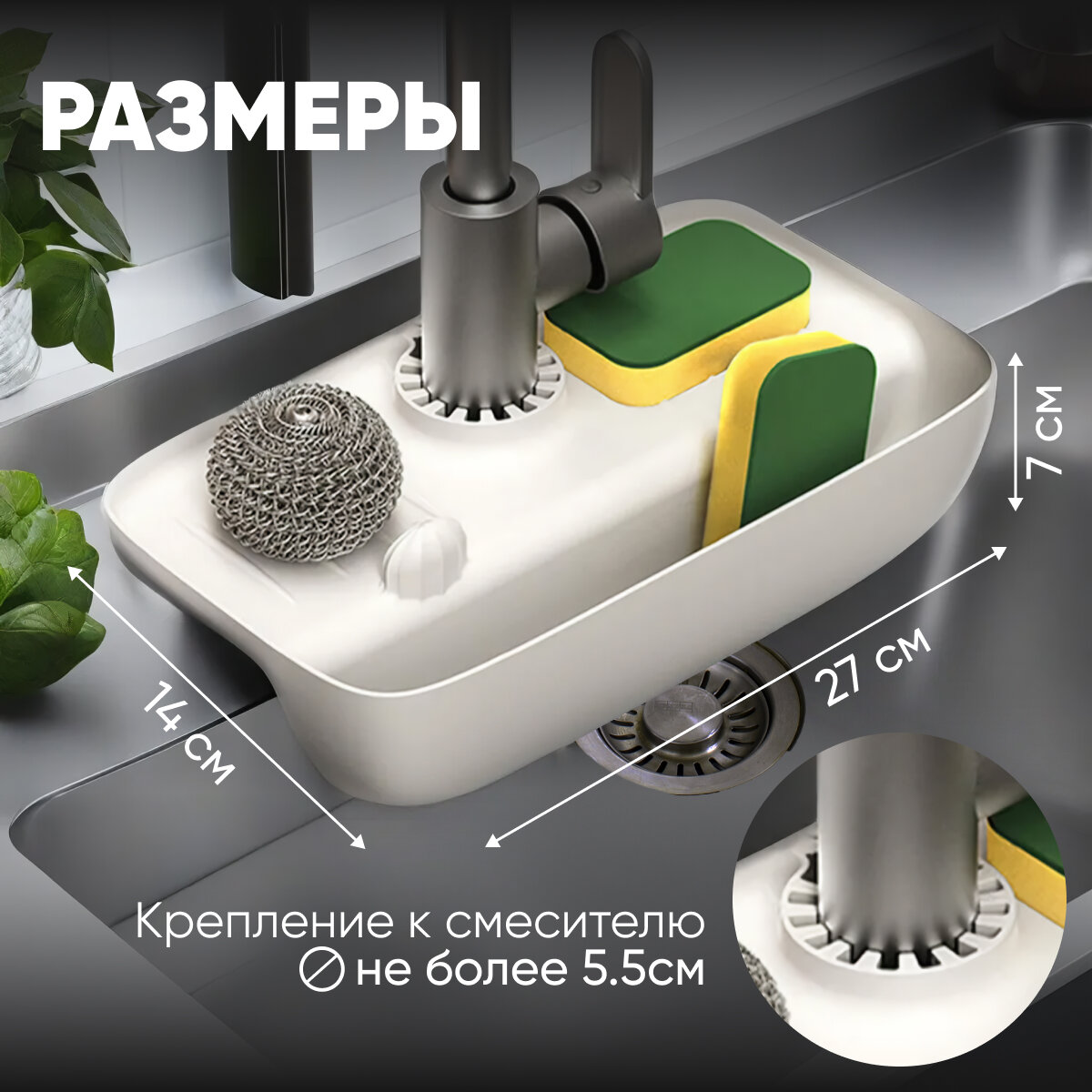 Держатель кухонный для губки и мыла на раковину, коврик-органайзер на кухонный кран для губки и моющих средств силиконовый универсальный