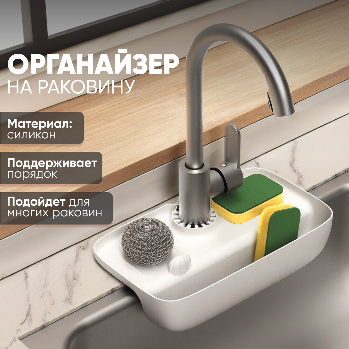 Купить Рейлинг для кухни. Держатель для губки в раковину силиконовый, подвесной на кухонный кран для мыла и моющих средств на мойку, на раковину.