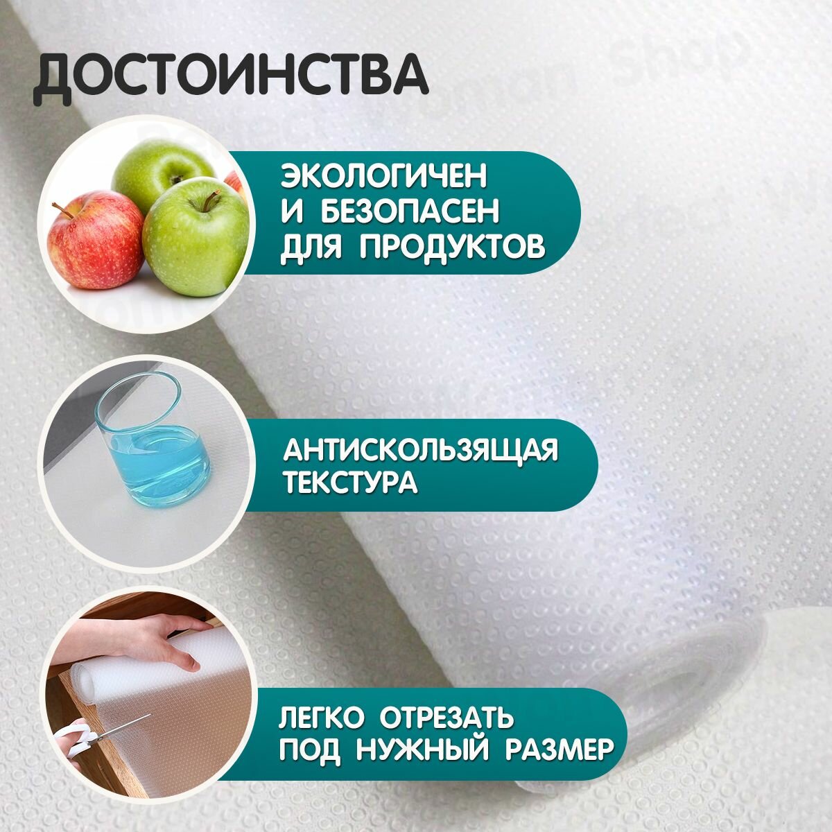 Силиконовый коврик для холодильника кухонных полок ящиков антискользящий в рулоне 60см 500см интересное: